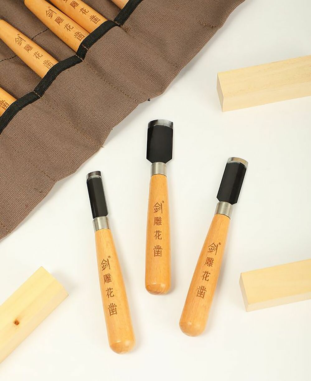 Стамески по дереву набор 12 шт. Набор ножей (резцов, больших) для вырезки из дерева
