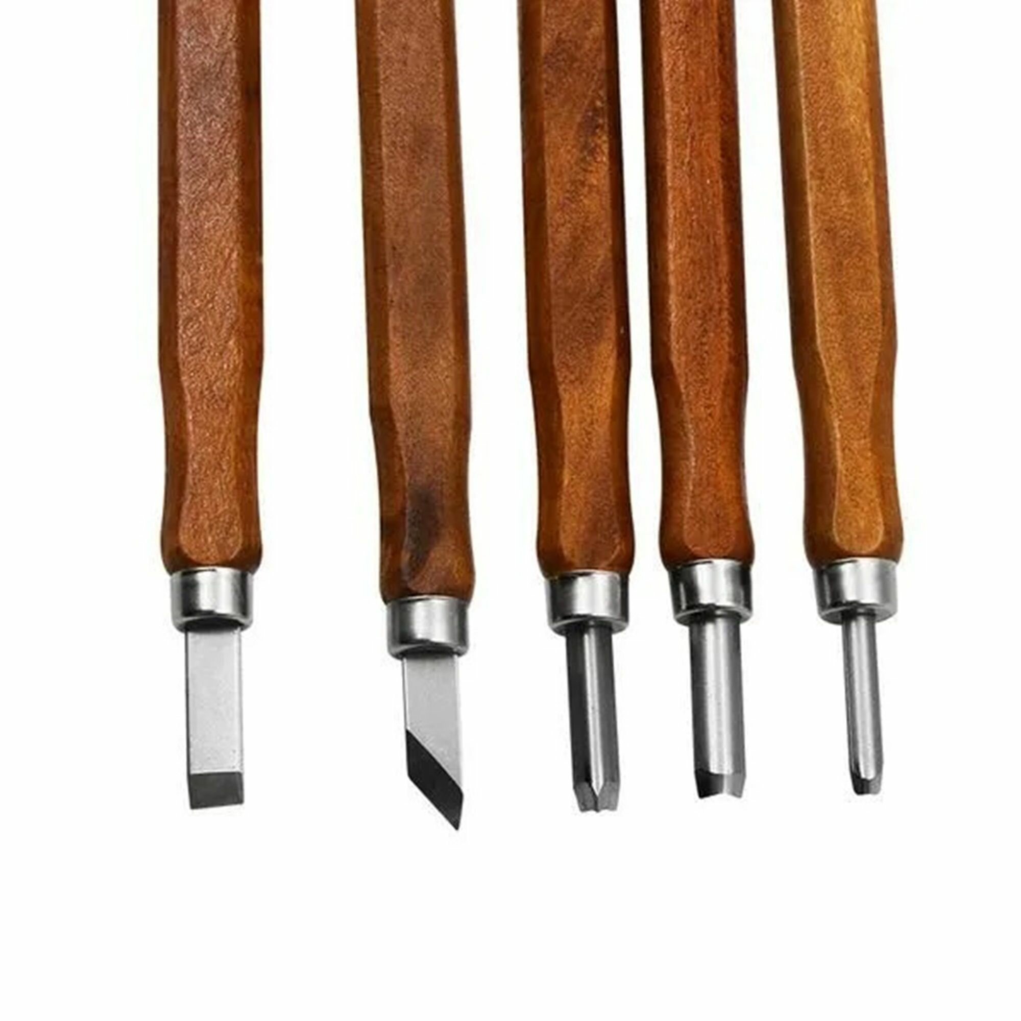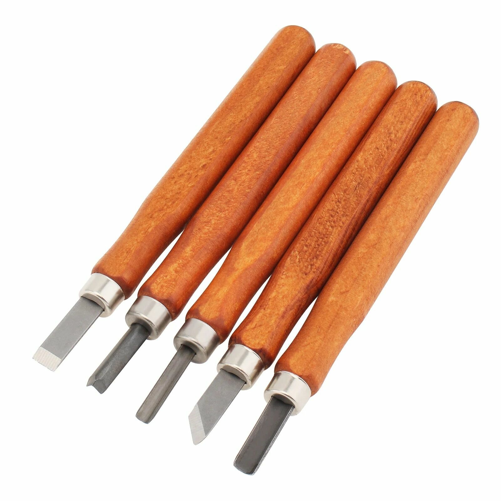Купить 5 шт! Набор ножей для фигурной резьбы по дереву и резки древесины темно-коричневый