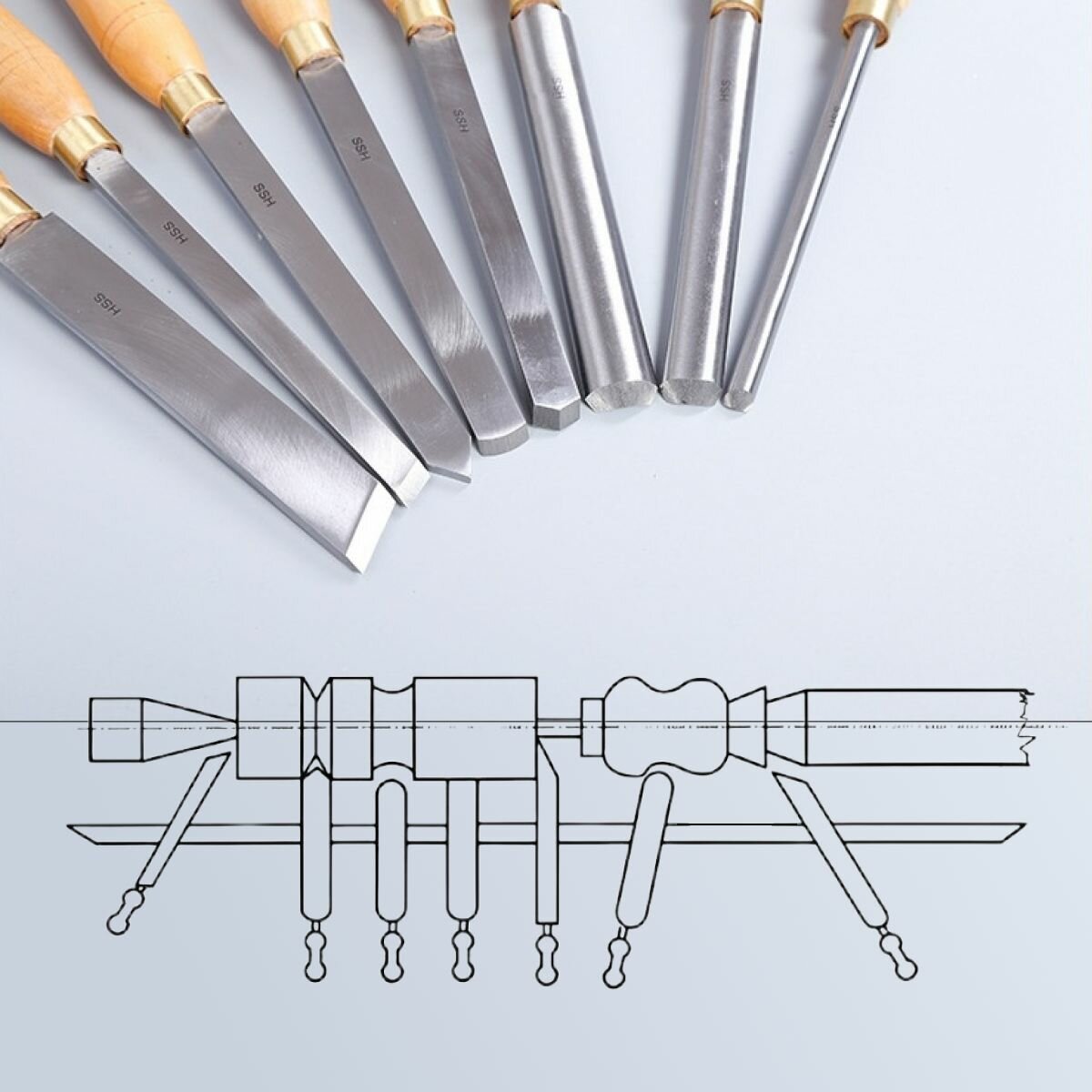 Резцы по дереву токарные, деревянная рукоятка, набор ножей для токарного станка в коробке 8 шт интересное: