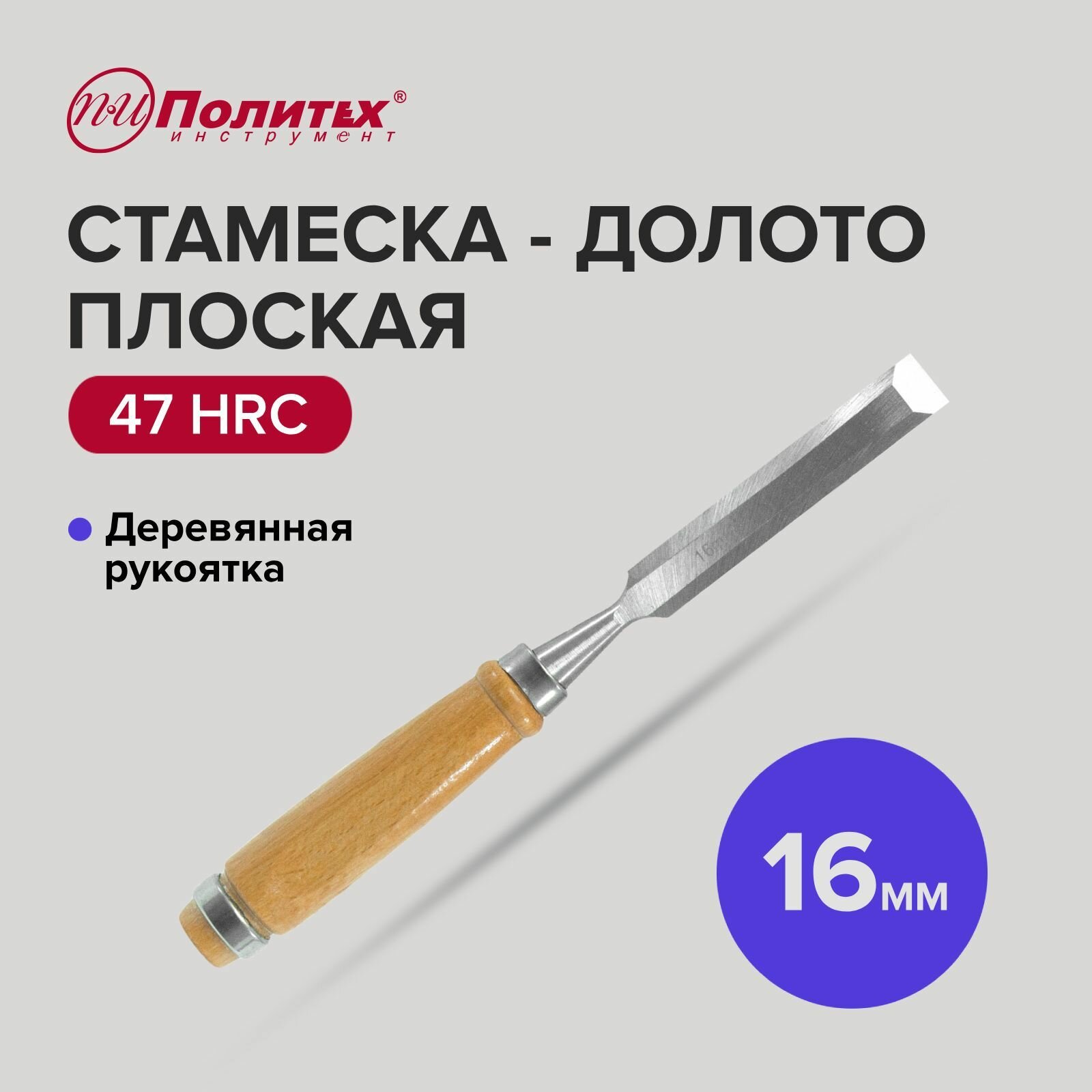 СохранитьСтамеска - долото плоская с деревянной рукояткой 16 мм, Политех Инструмент интересное: