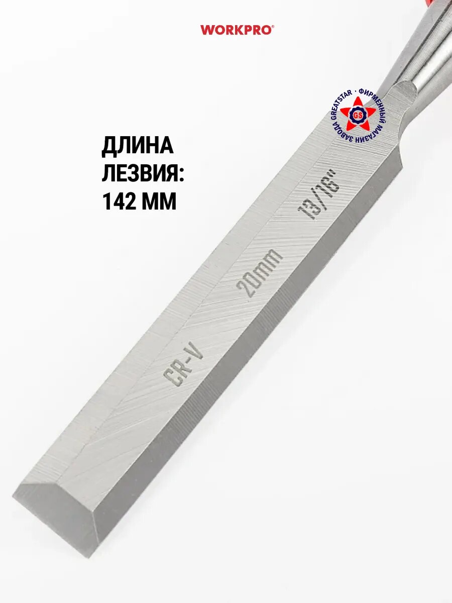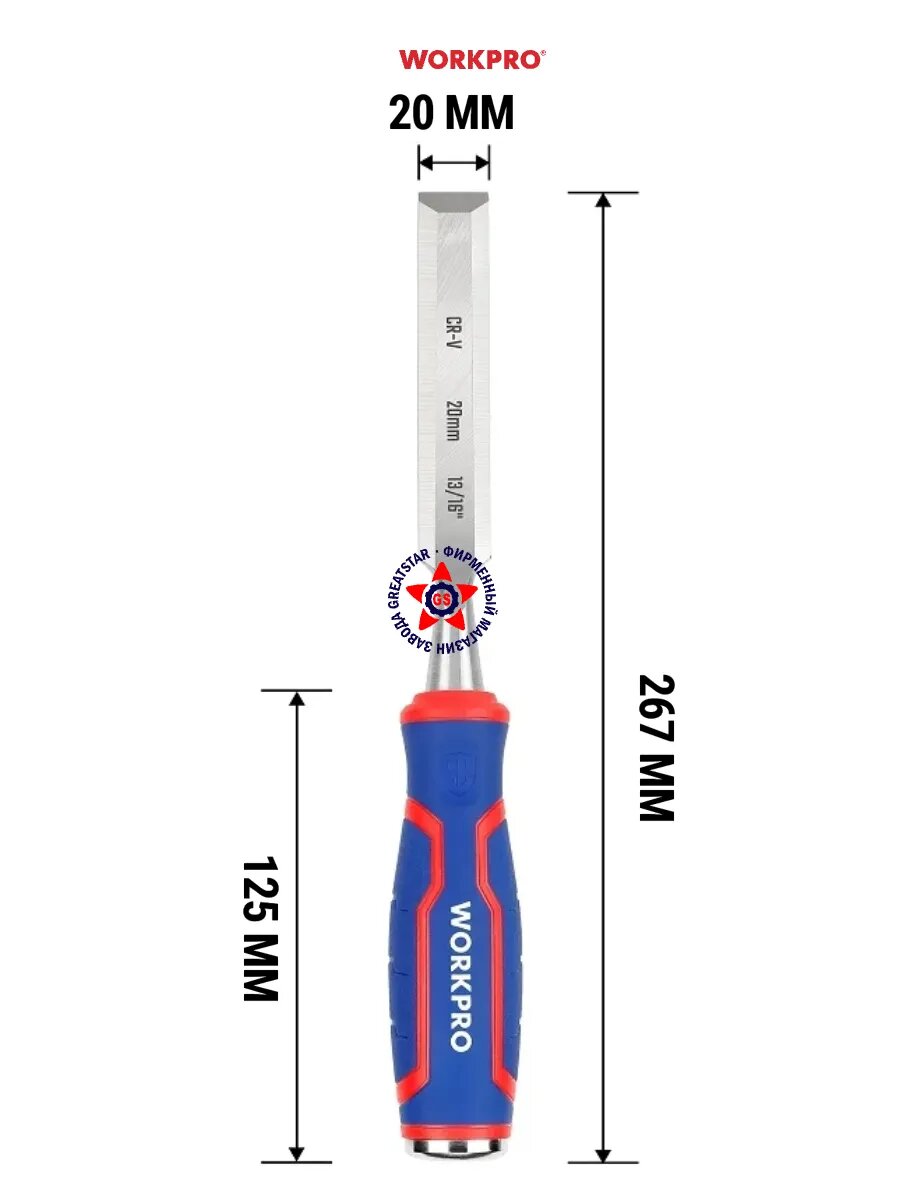 СохранитьСтамеска-долото с двухкомпонентной рукояткой, 20 мм, CR-V WP243009, WORKPRO #WP243009, цвет синий интересное: