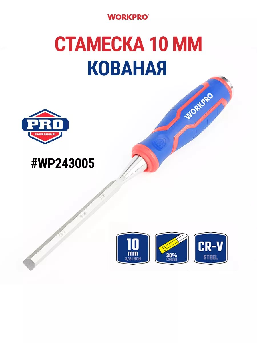 Купить Стамеска-долото 10мм WP243005 CR-V кованая сталь, WORKPRO #WP243005