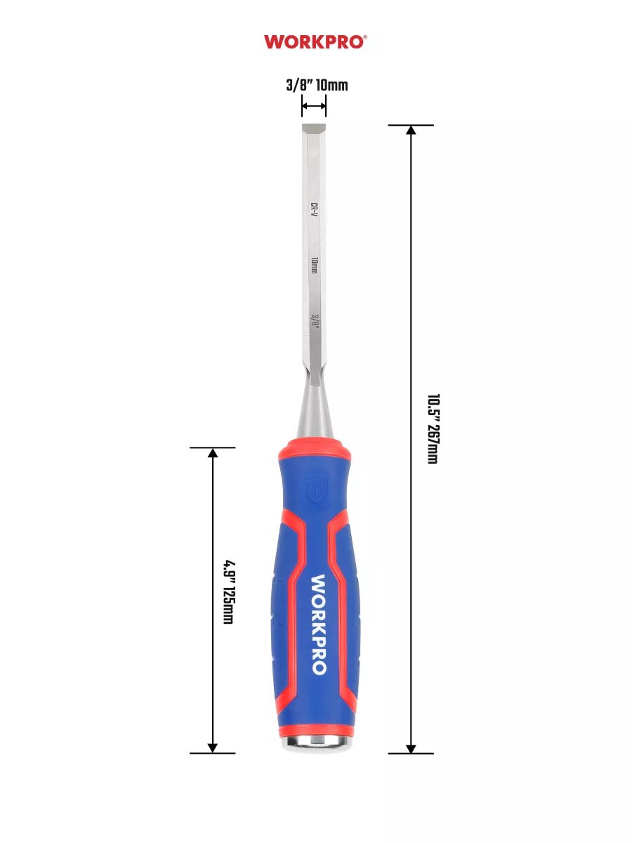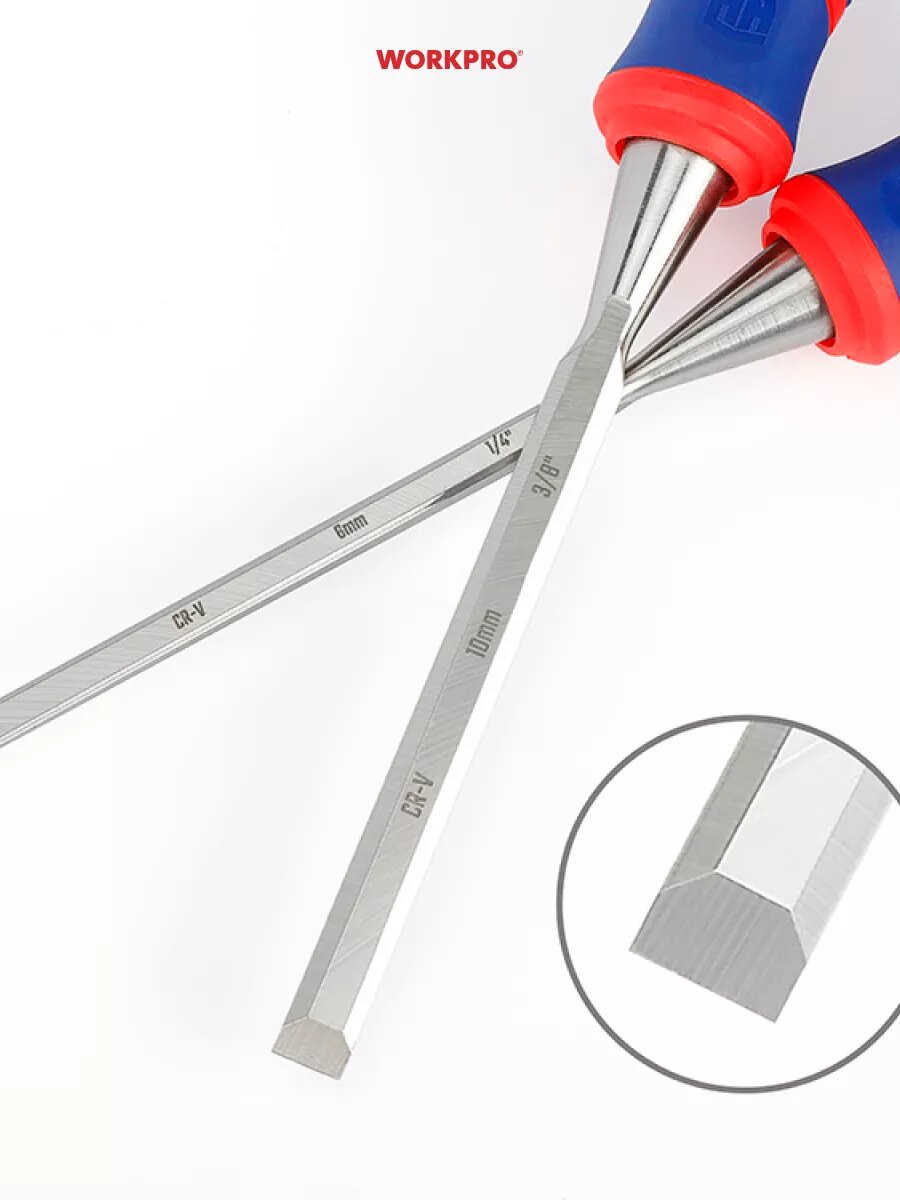 Стамеска-долото с двухкомпонентной рукояткой, 12 мм, CR-V WP243006, WORKPRO #WP243006, цвет синий
