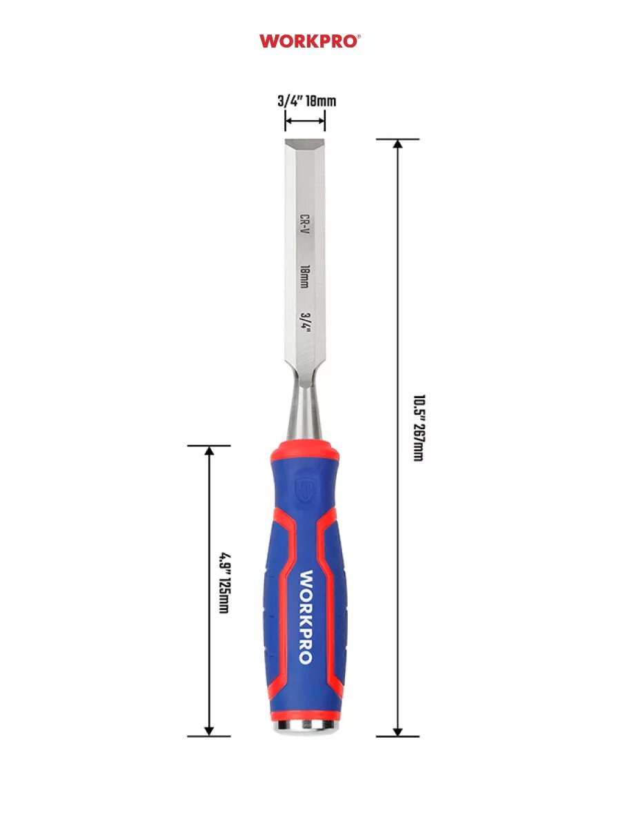 Стамеска-долото с двухкомпонентной рукояткой, 20 мм, CR-V WP243009, WORKPRO #WP243009, цвет синий