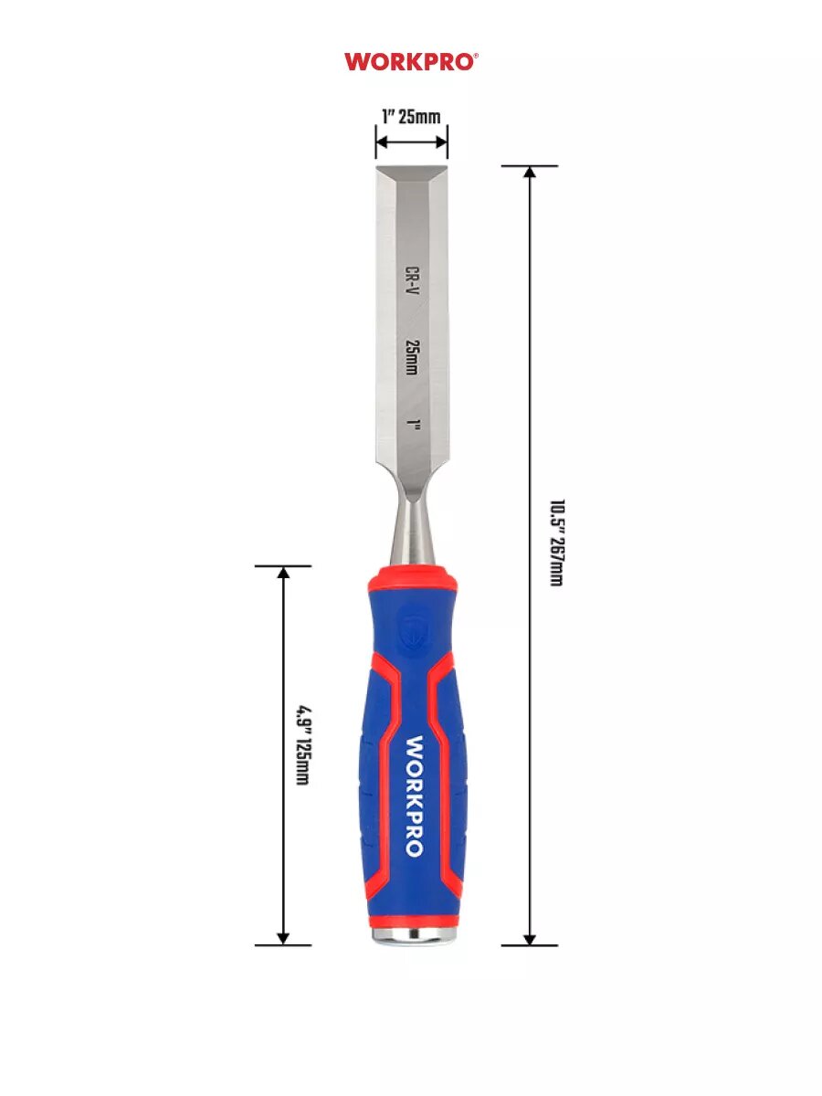 Купить Стамеска-долото 25мм WP243010 CR-V кованая сталь, WORKPRO #WP243010