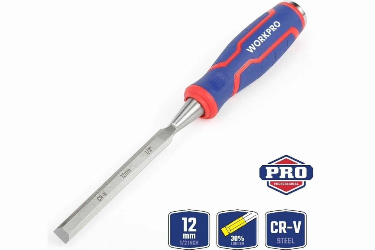 Стамеска-долото с двухкомпонентной рукояткой, 12 мм, CR-V WP243006, WORKPRO #WP243006, цвет синий