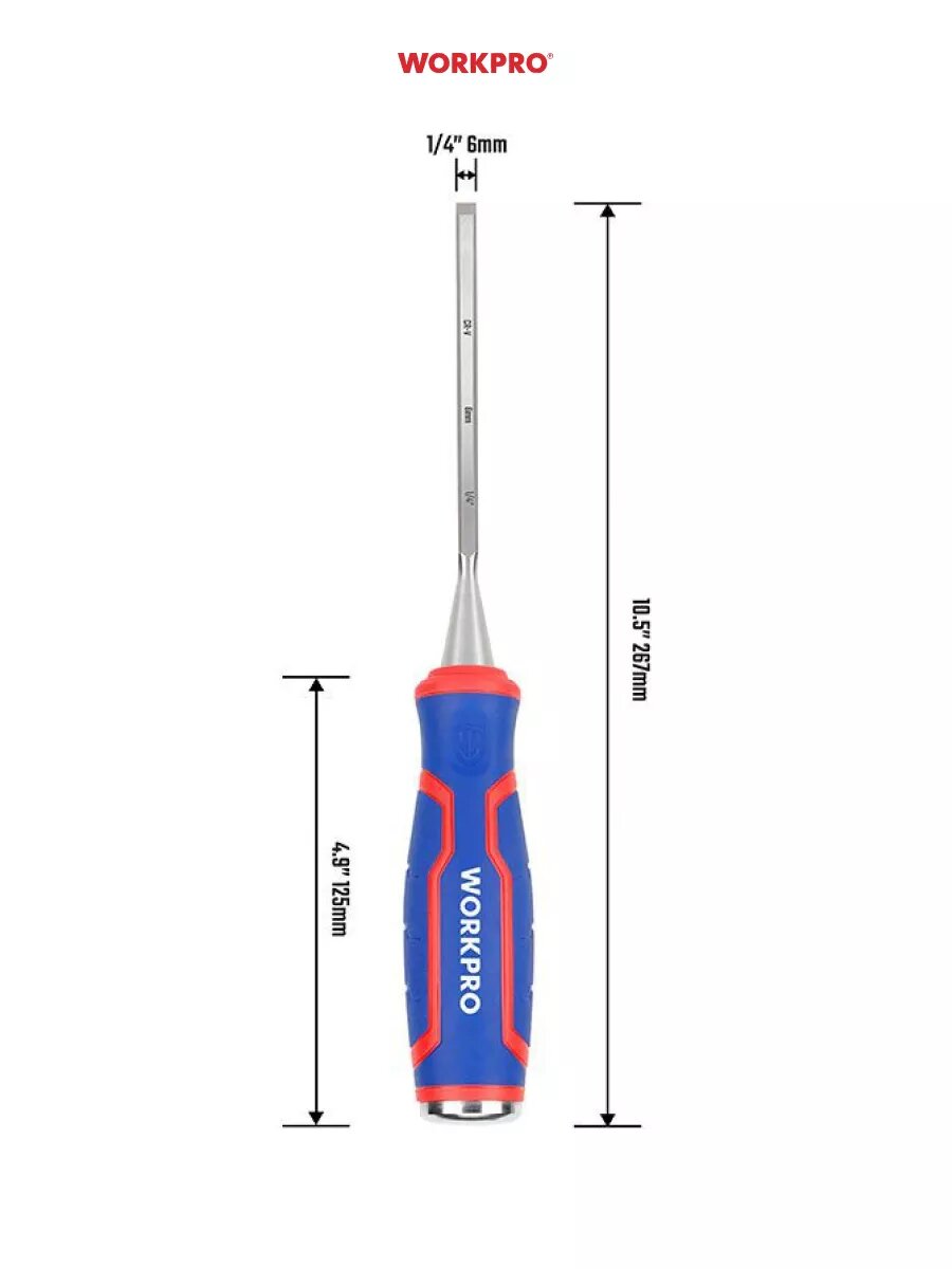 Стамеска-долото с двухкомпонентной рукояткой, 12 мм, CR-V WP243006, WORKPRO #WP243006, цвет синий