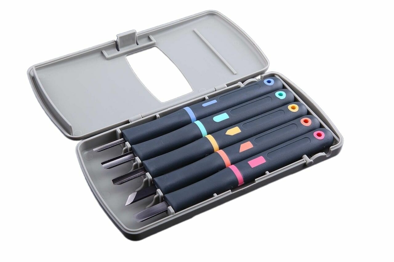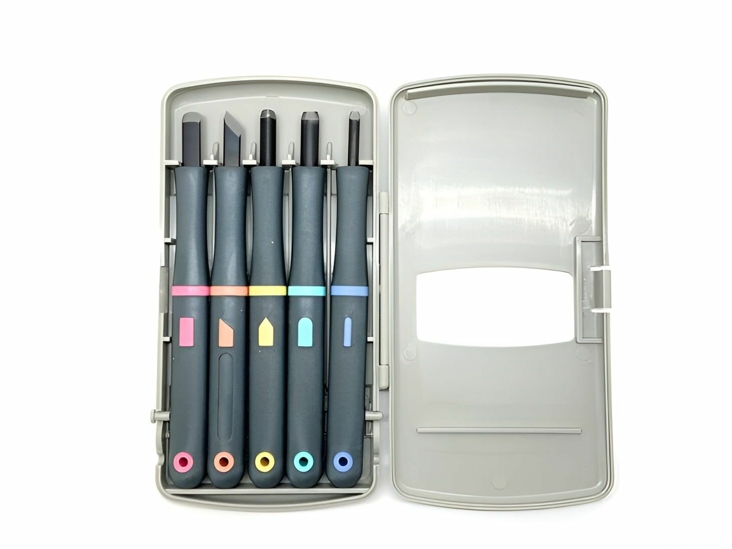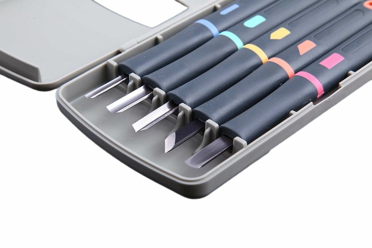 Купить Набор для резьбы по дереву 5 предм, сталь SK-5 2 слоя, пластиковый кейс серый