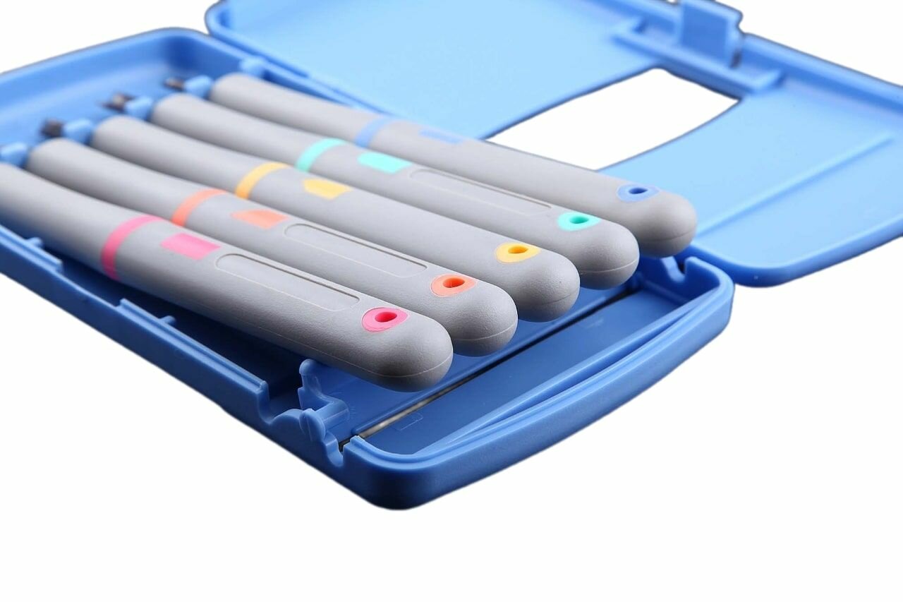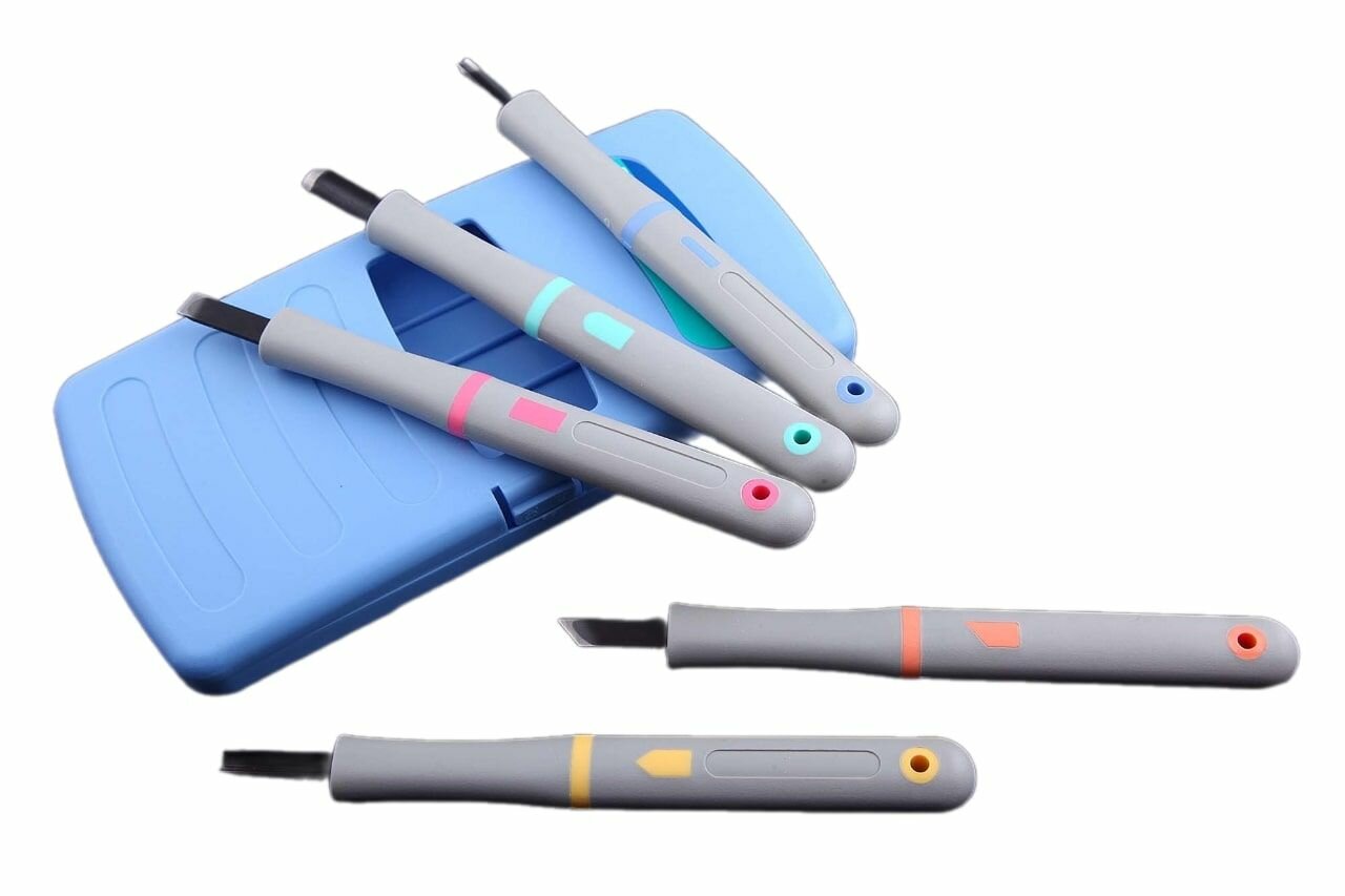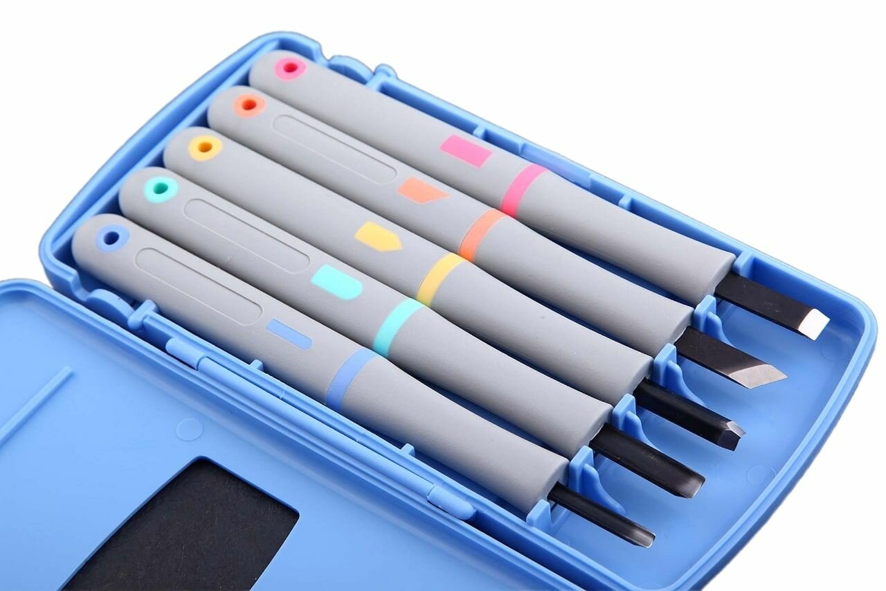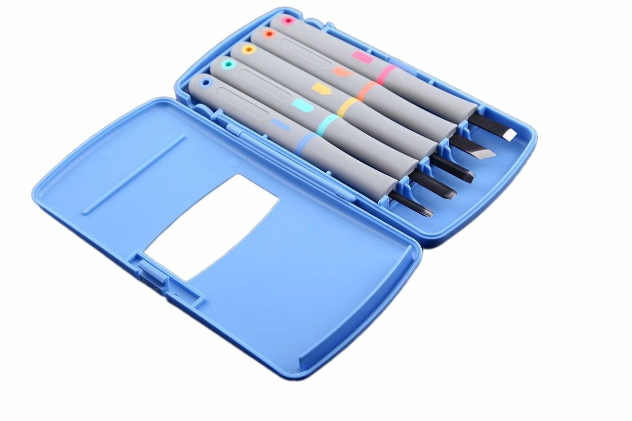 Купить Набор для резьбы по дереву (5 пред), сталь SK-5 1 слой, пластиковый кейс голубой