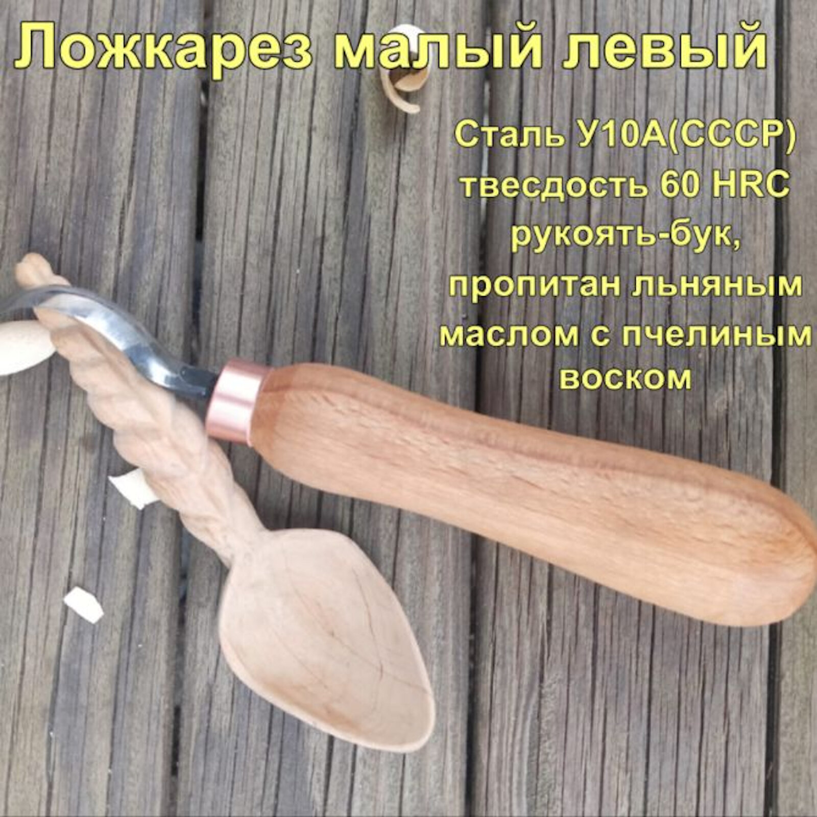 Ложкорез левый, малый (левша), Ручная работа, сталь У10А (СССР) ручка буковая интересное: