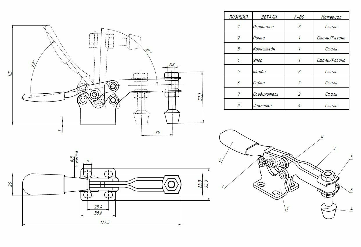 Прижим шарнирно-рычажный с усилием 227кг, A500 / 1 шт / соберизавод интересное: