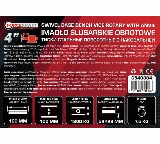 Тиски стальные поворотные с наковальней 4" (100мм) FORCEKRAFT интересное: