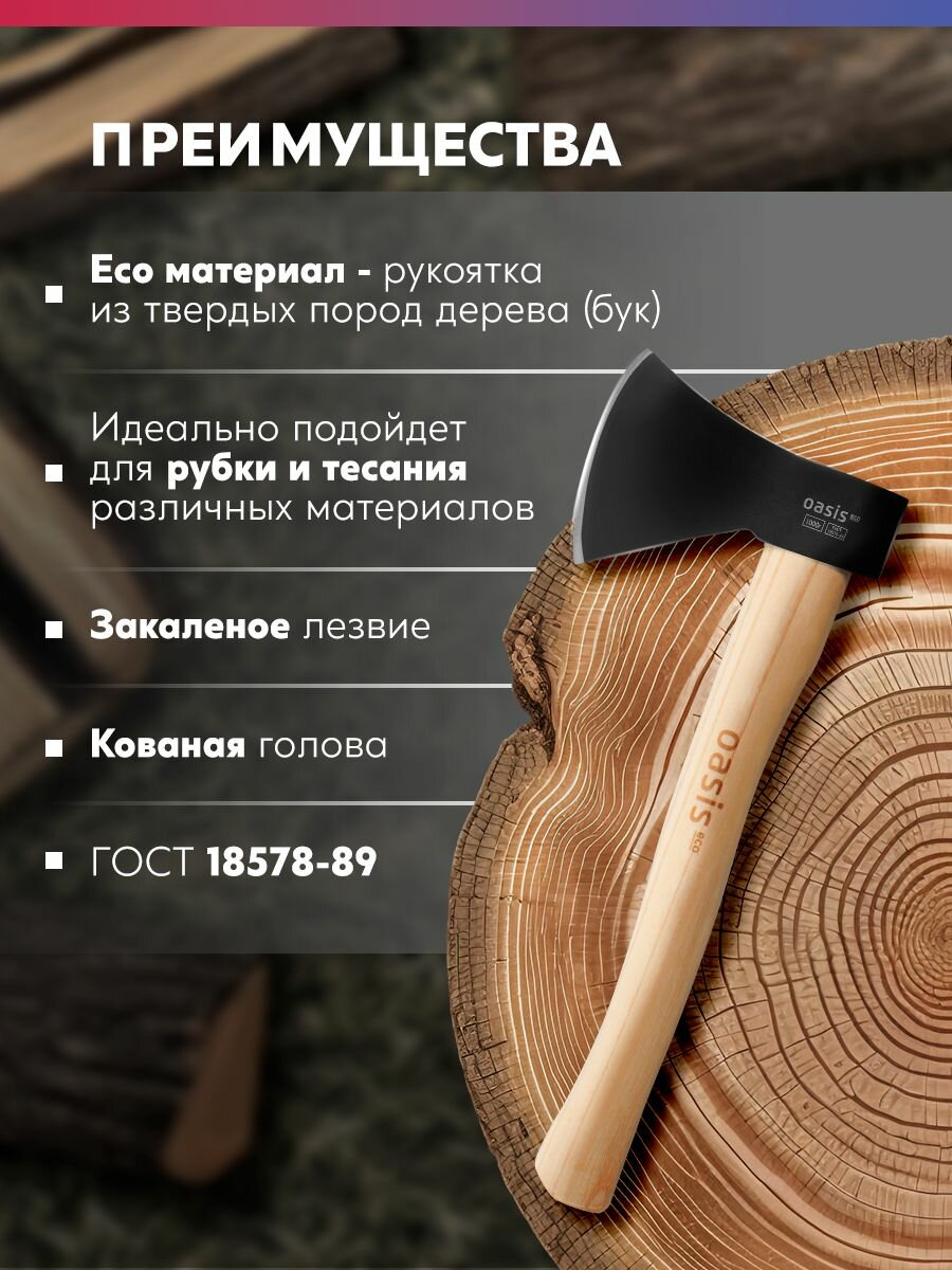 Топор с деревянной рукояткой, длина 43 см, Oasis Eco 1000 г_103010401003 интересное: