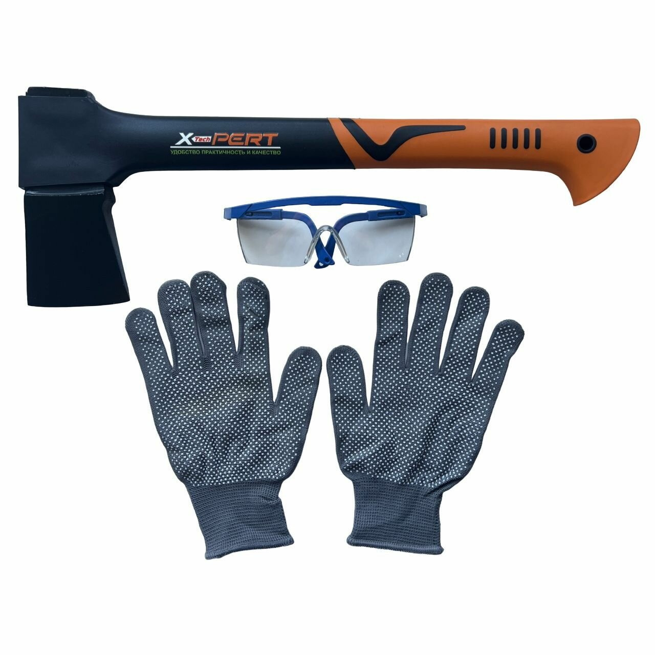 Топор-колун универсальный X-PERT, в пластиковом чехле 950г, очки + перчатки в комплекте интересное: