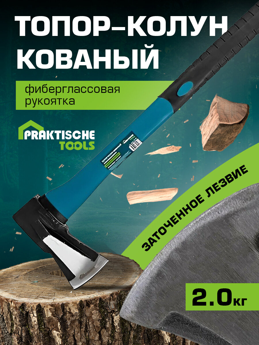 Топор-Колун кованый `PRAKTISCHE TOOLS`, клиновидная форма, фиберглассовое топорище 880 мм, 2000 г интересное: