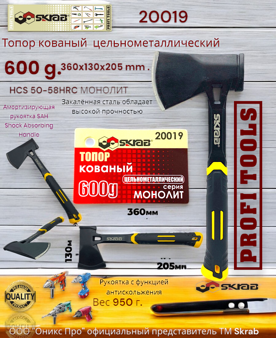 Топор 600 г кованый цельнометаллический HCS 50-58HRC МОНОЛИТ SKRAB 20019 интересное:
