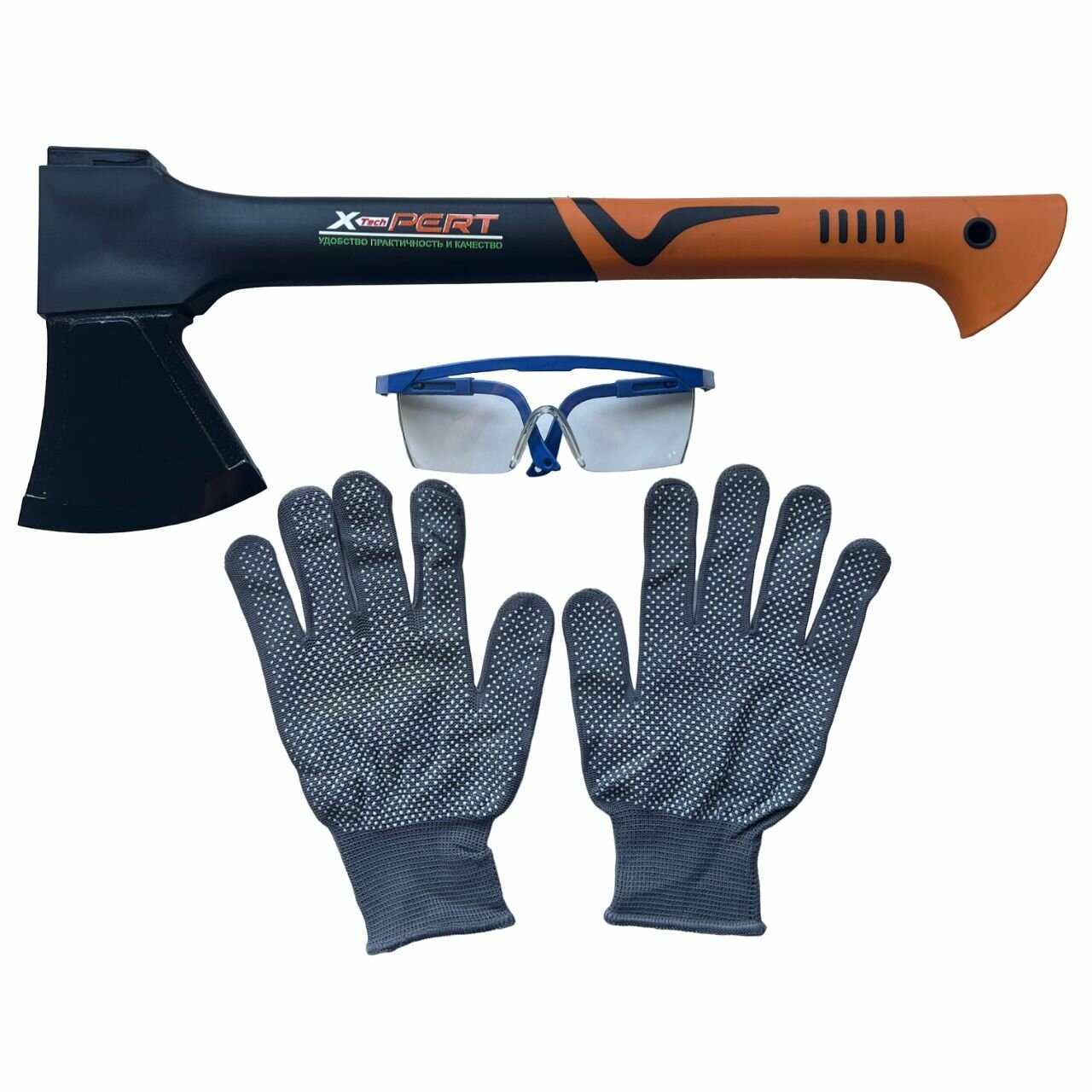 Топор-колун универсальный X-PERT, в пластиковом чехле 1100г, очки + перчатки в комплекте интересное: