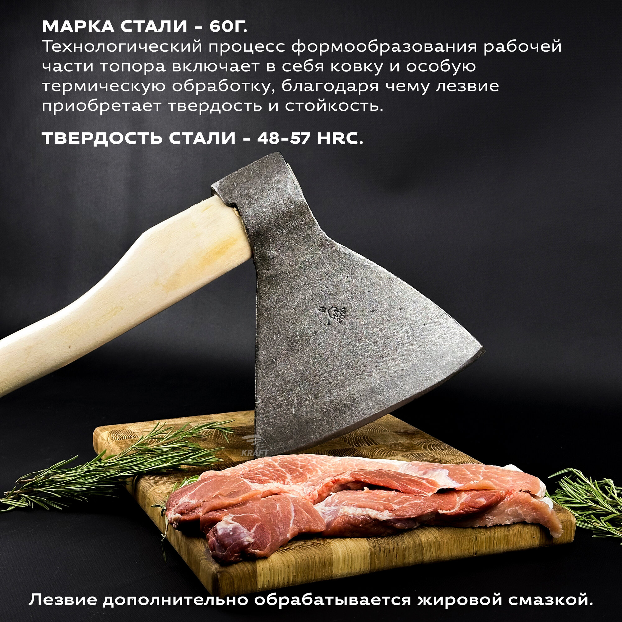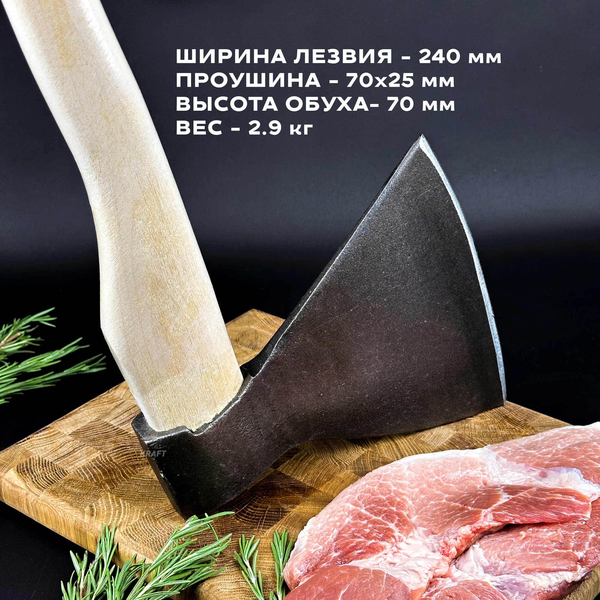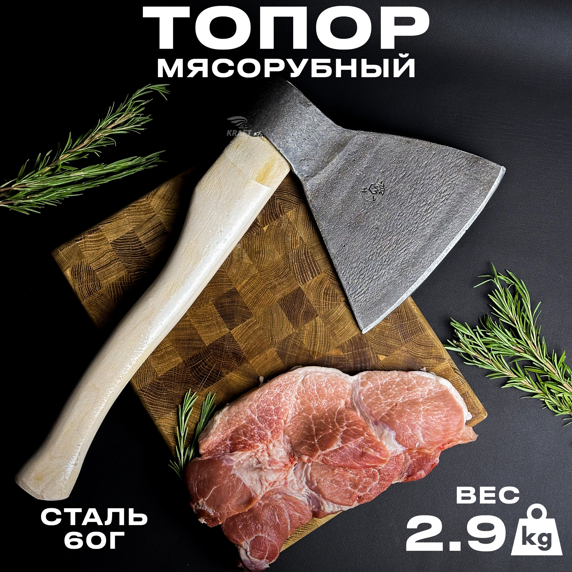 Топор для рубки мяса, кованый, стальной, 60Г, вес 2.9 кг, длина ручки 50 см интересное:
