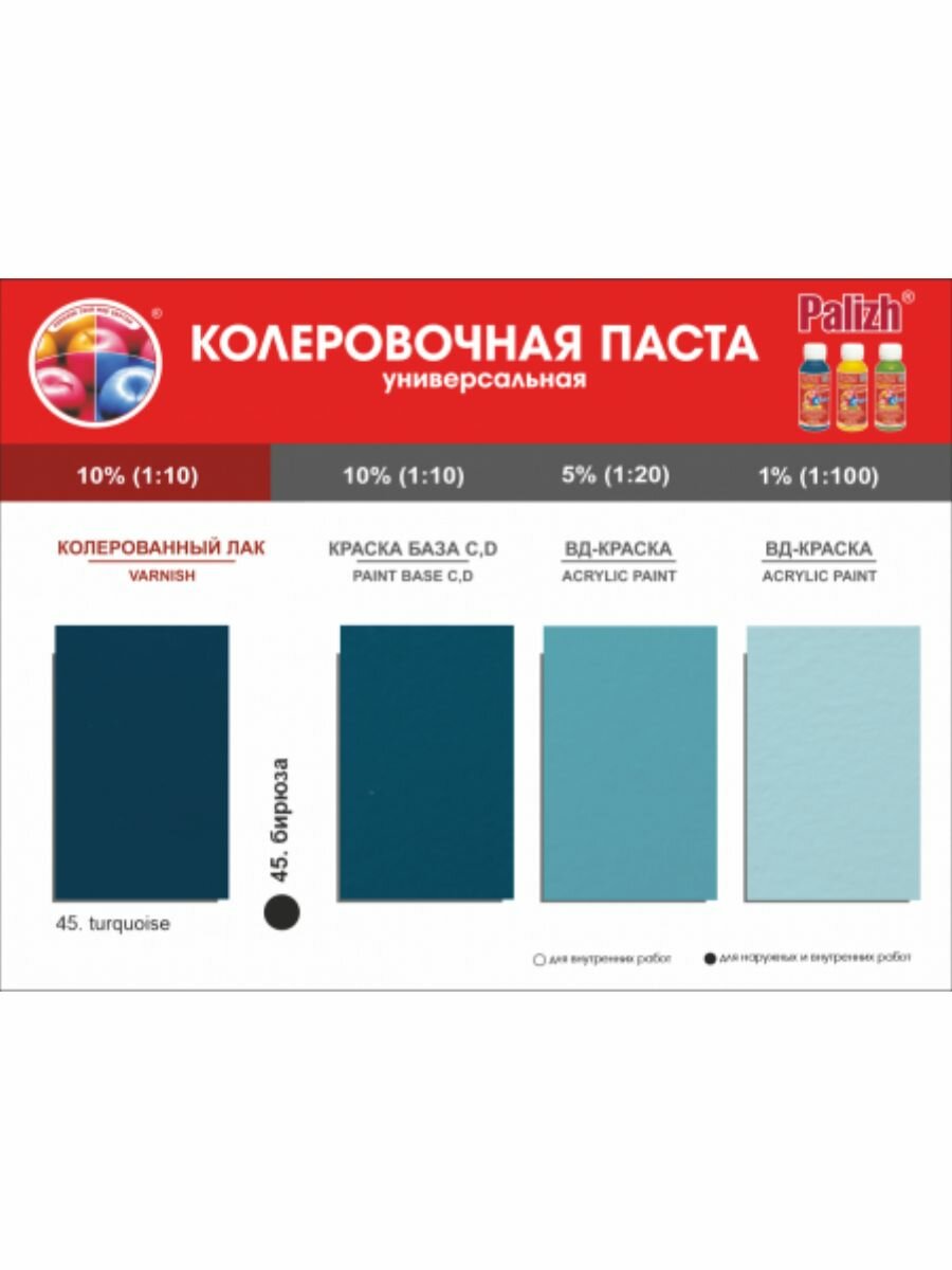 Колер для краски "Palizh STANDART" 0,1л №45 бирюза