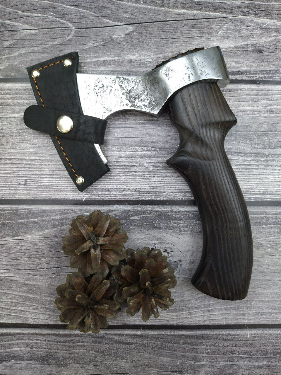 Топор Скинер, кованная сталь У8, рукоять из ценных пород дерева, чехол из натуральной кожи, Мастерская Семина