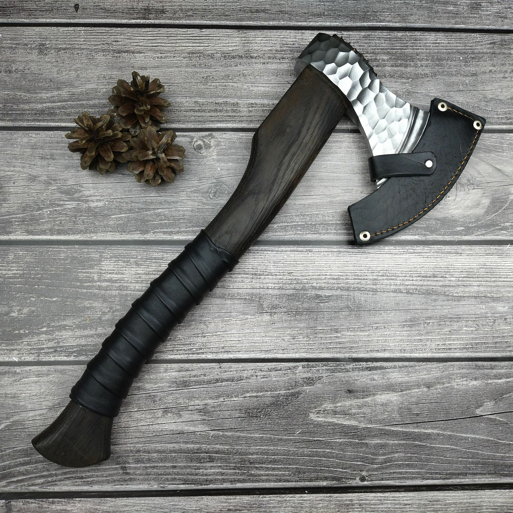 Топор Скинер, кованная сталь У8, рукоять из ценных пород дерева, чехол из натуральной кожи, Мастерская Семина