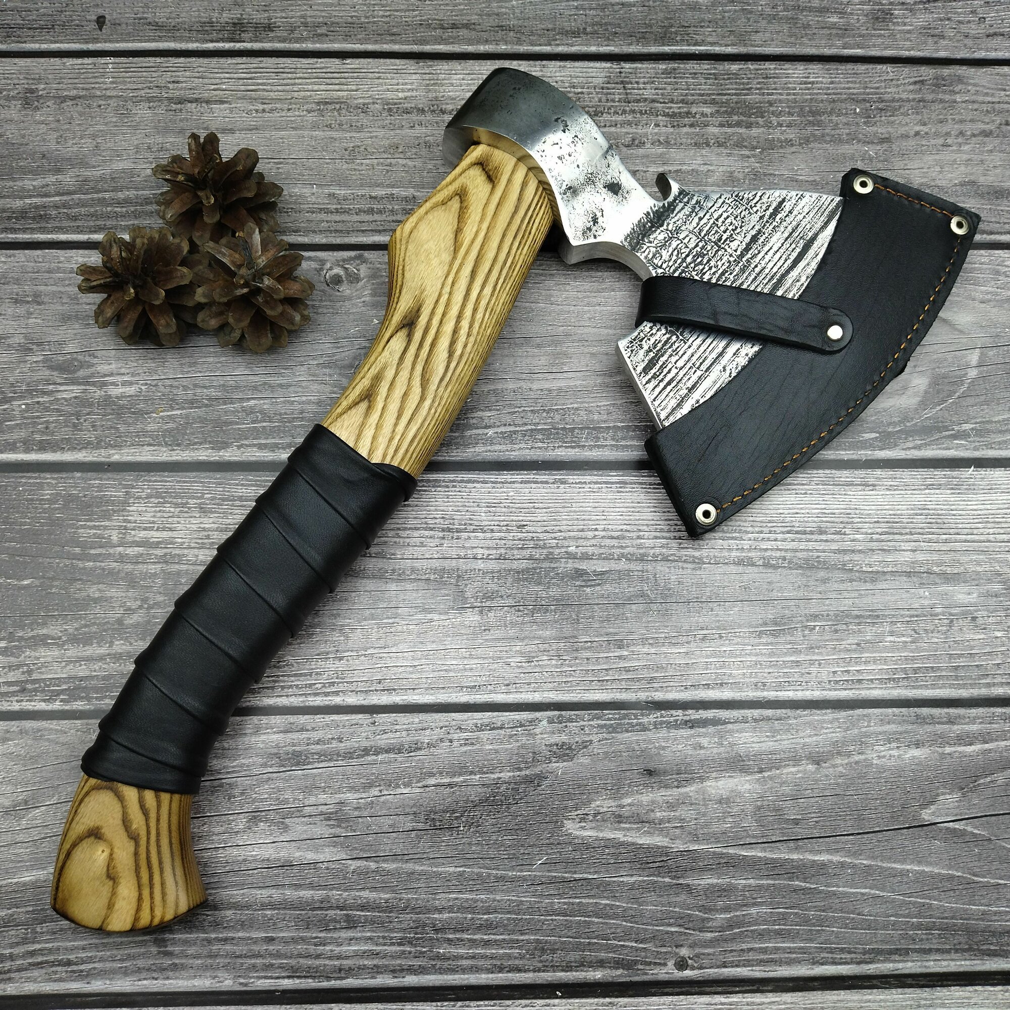 Топор Скинер, кованная сталь У8, рукоять из ценных пород дерева, чехол из натуральной кожи, Мастерская Семина