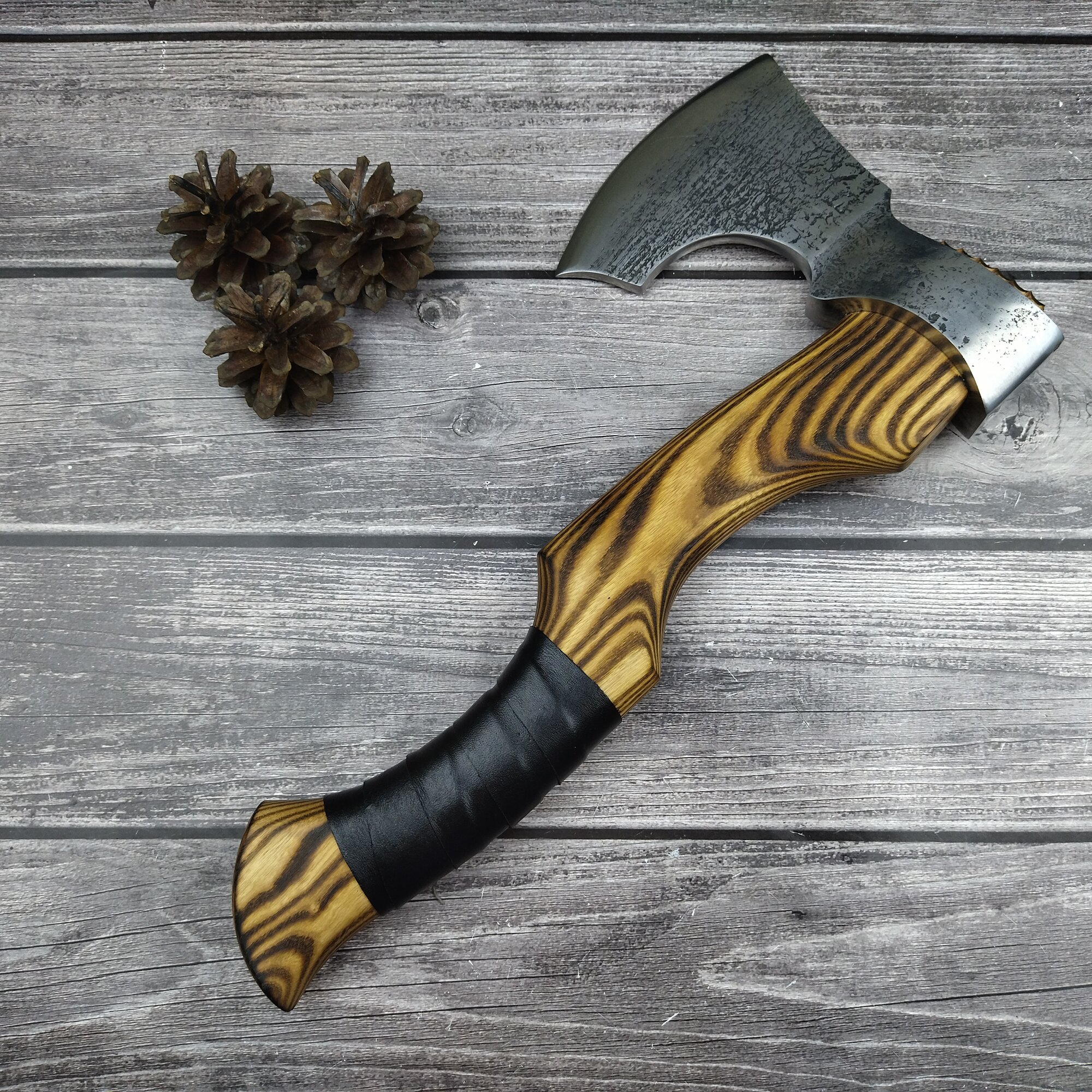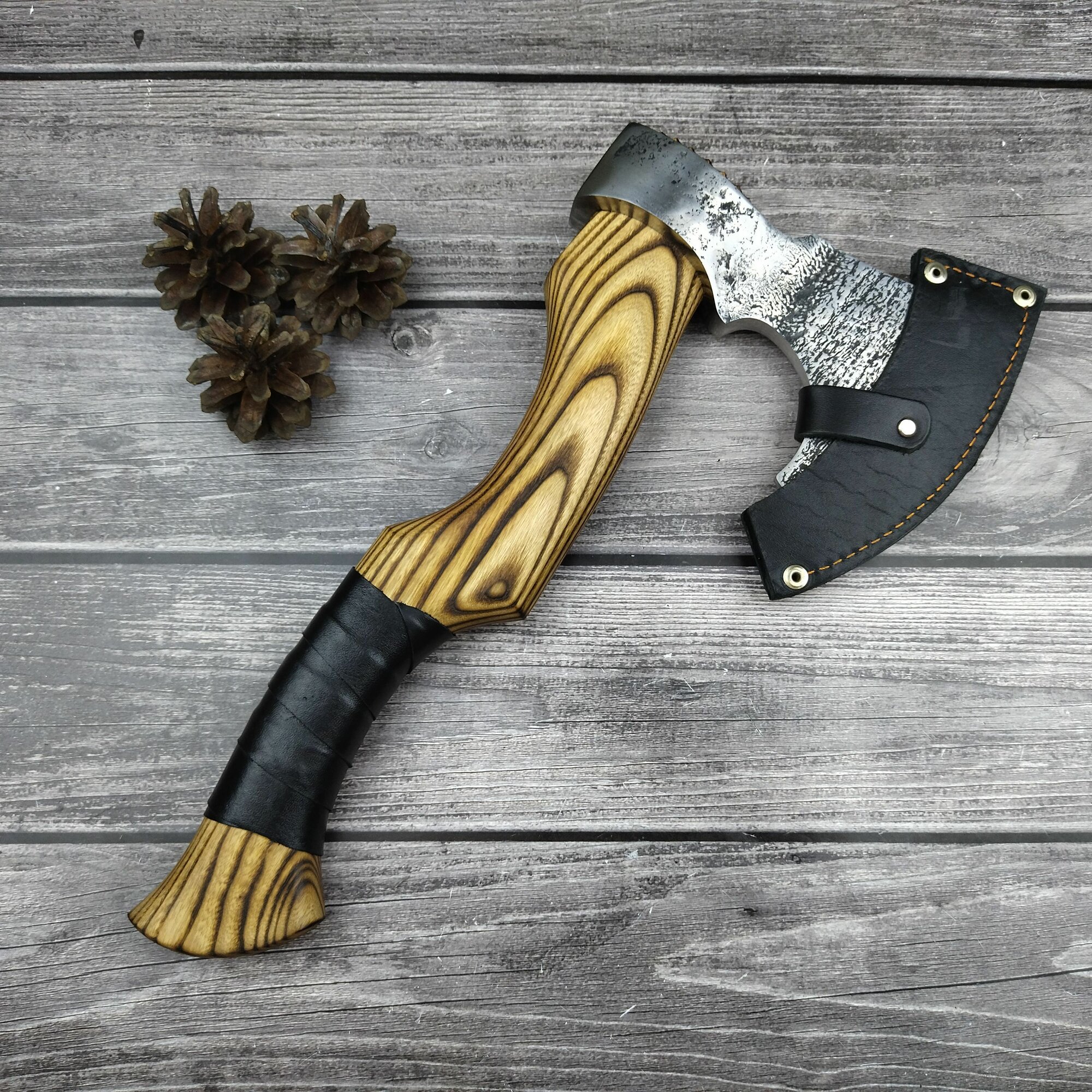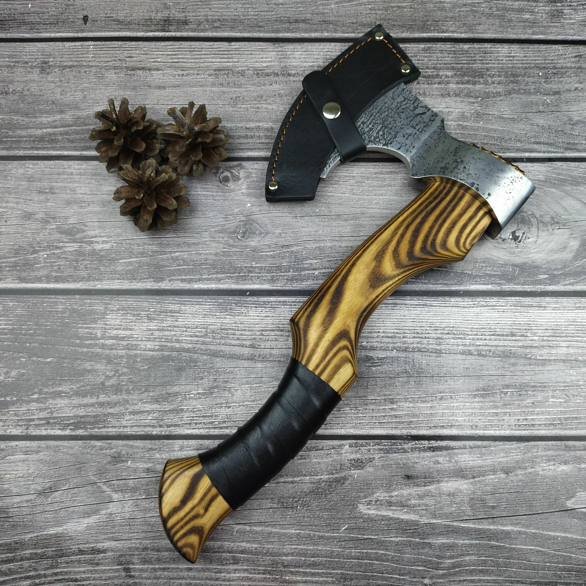 Топор Скинер, кованная сталь У8, рукоять из ценных пород дерева, чехол из натуральной кожи, Мастерская Семина