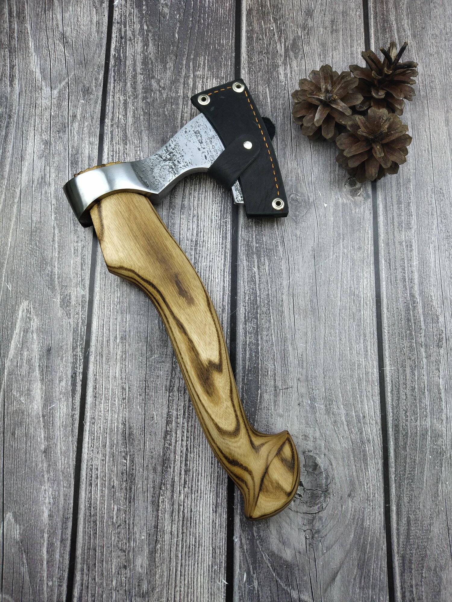 Топор Катран №1, кованная сталь У8, рукоять из ценных пород дерева, чехол из натуральной кожи, Мастерская Семина