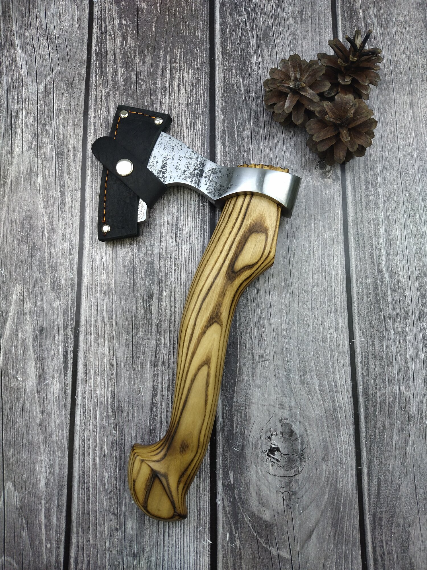 Топор Скинер, кованная сталь У8, рукоять из ценных пород дерева, чехол из натуральной кожи, Мастерская Семина