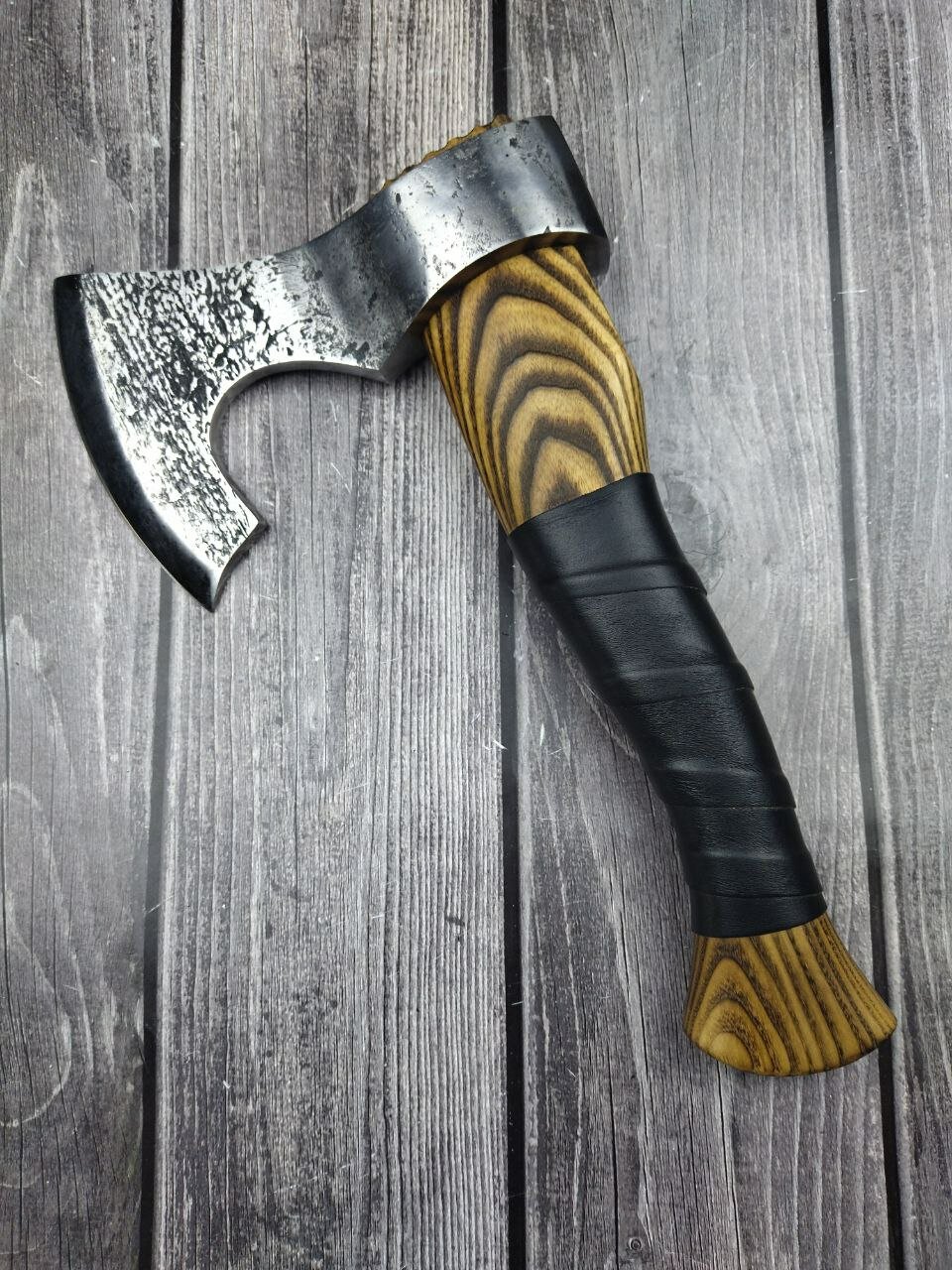 Топор Русич №1, кованная сталь У8, рукоять из ценных пород дерева, чехол из натуральной кожи, Мастерская Семина