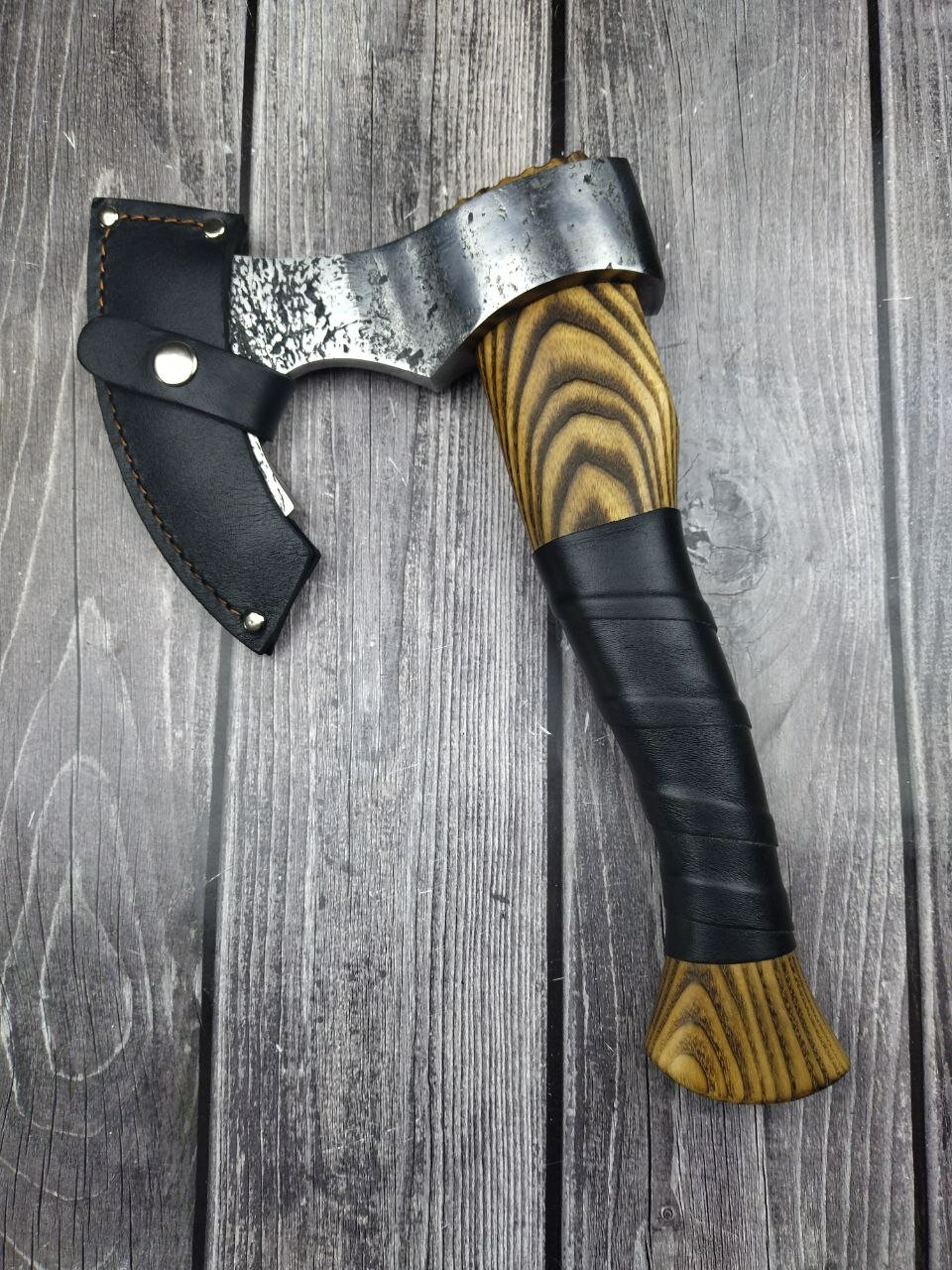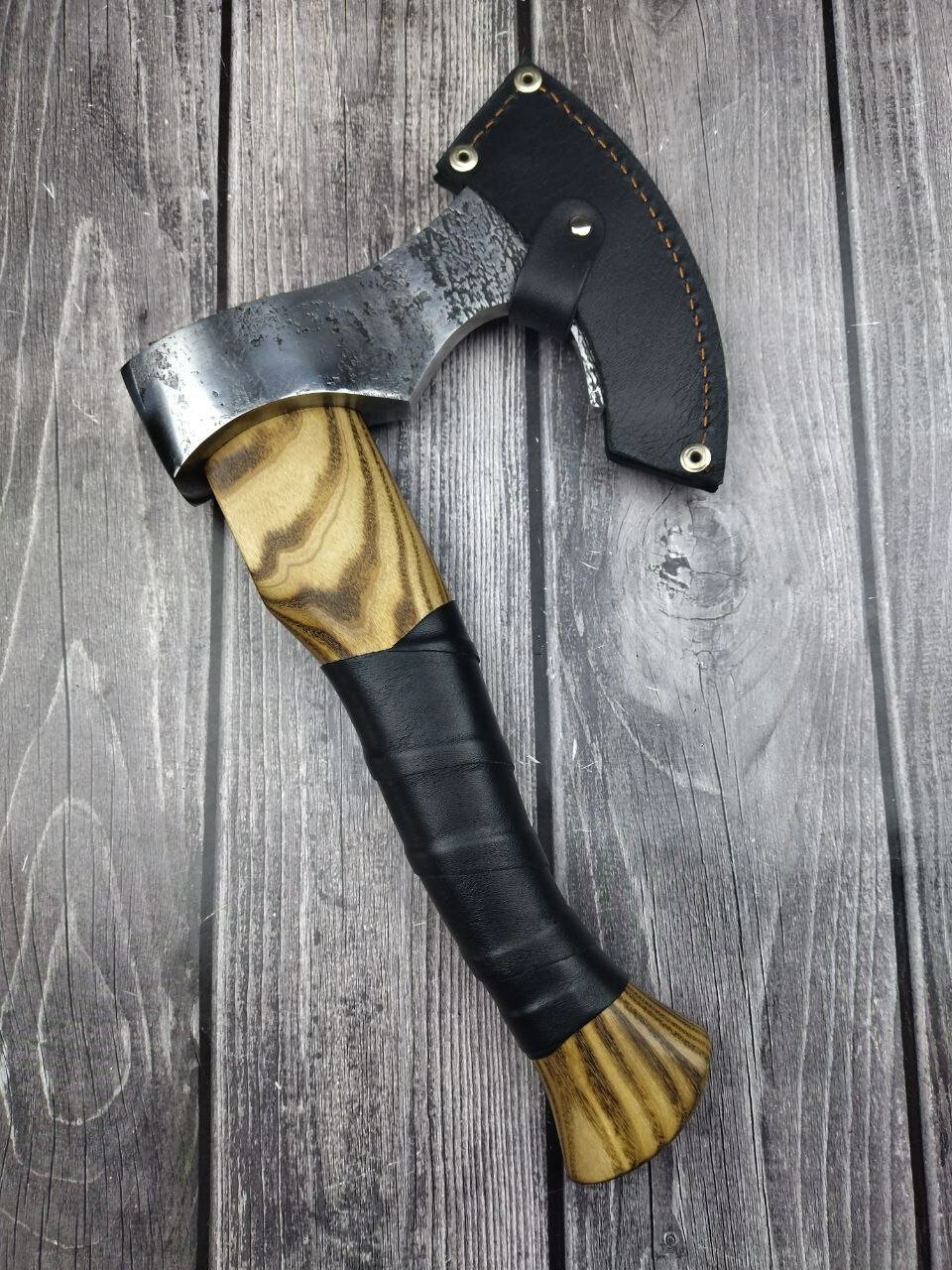 Топор Скинер, кованная сталь У8, рукоять из ценных пород дерева, чехол из натуральной кожи, Мастерская Семина
