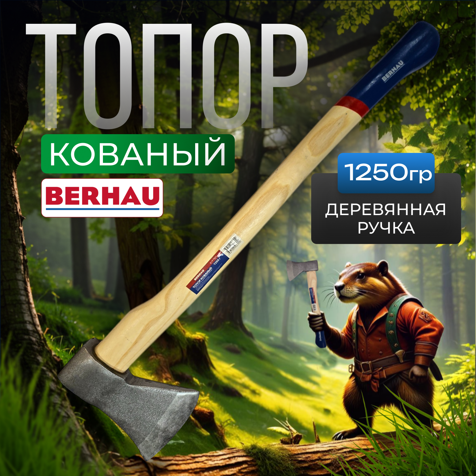 Топор кованый 1250гр деревянное топорище BERHAU Standart 102131 интересное: