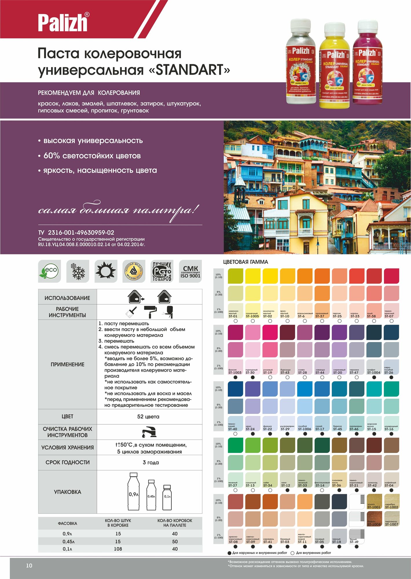 Паста колер универ. "Palizh STANDART" 0,1л №14 фисташковый