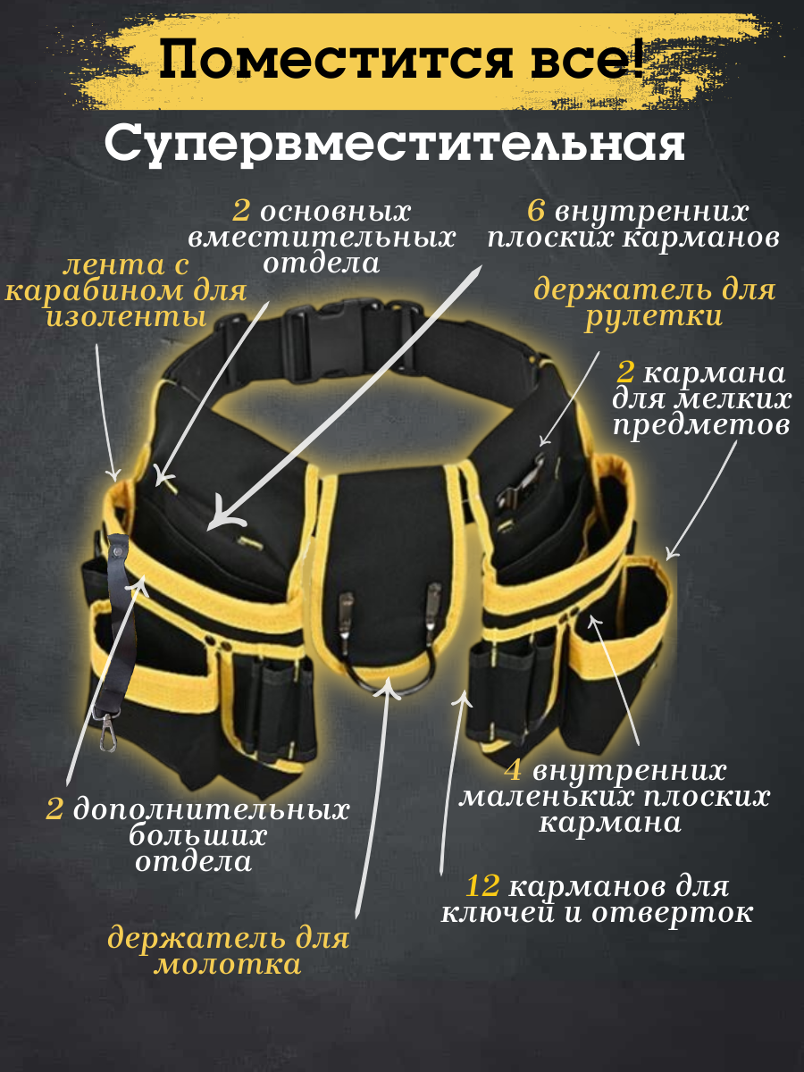 Ниже Вы можете прочитать отзывы на Сумка-пояс для инструментов универсальная строительная 28 карманов с держателем для молотка и рулетки, ознакомится с подробными характеристиками, посмотреть интересные обзоры и фотографии на Сумка-пояс для инструментов универсальная строительная 28 карманов с держателем для молотка и рулетки.