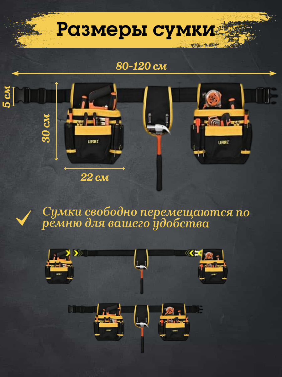 Сумка-пояс для инструментов универсальная строительная 28 карманов с держателем для молотка и рулетки интересное: