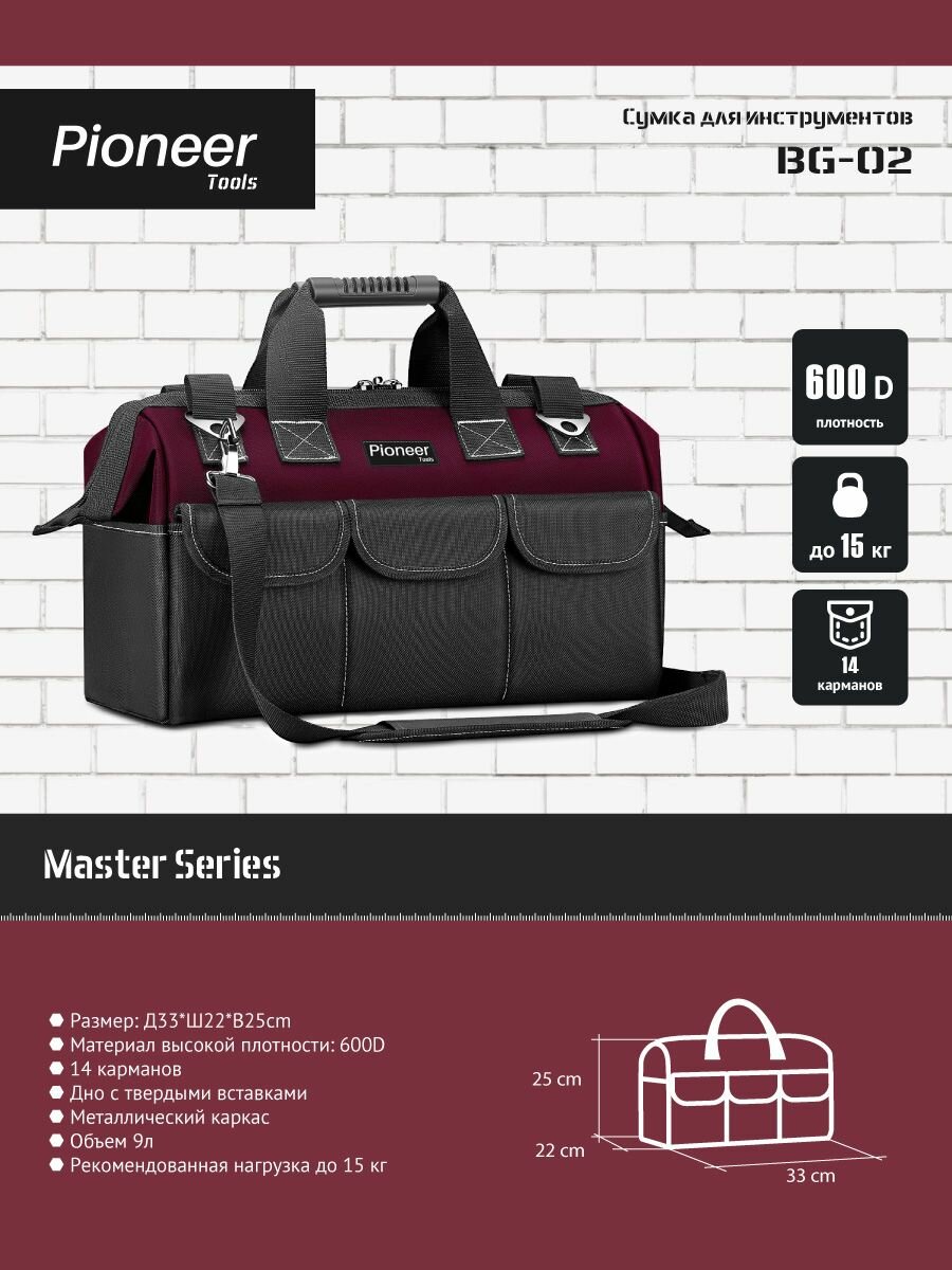 Сумка для инструментов Pioneer BG-02, 14 карманов, 9 л, металлический каркас, твердое дно, 33х22х25см интересное: