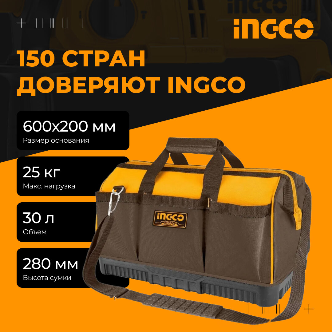 Сумка для инструментов INGCO INDUSTRIAL HTBG09 24", 30 л, 18 карманов интересное: