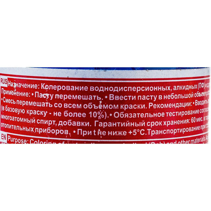 Паста колеровочная 0.1л, голубая - для колерования воднодисперсионных, алкидных (ПФ) лакокрасочных материалов: краски, лаки, эмали, шпатлевки, затирки, пропитки.