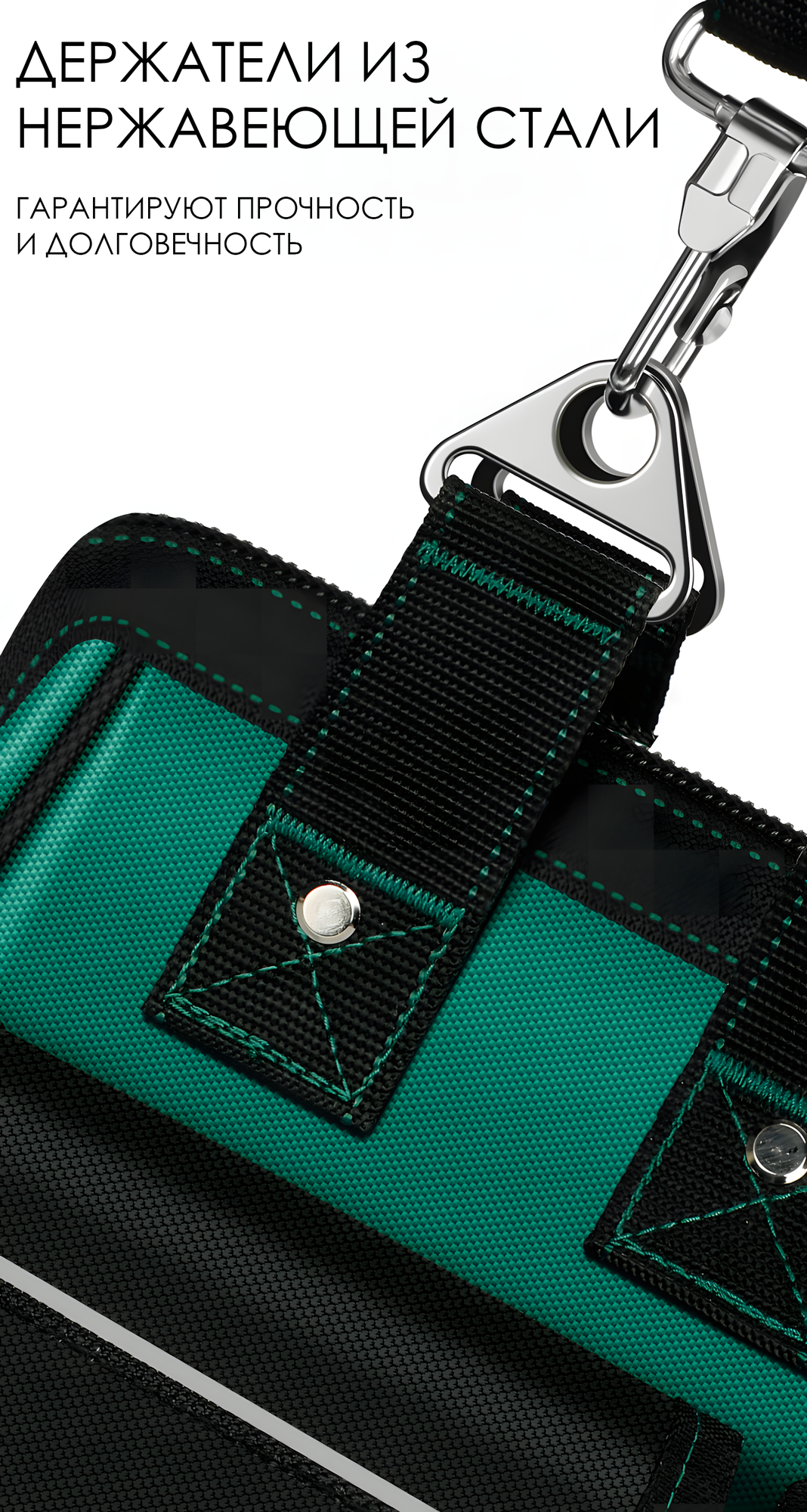 СохранитьУтолщенная сумка для инструментов, плечевой ремень, Оксфорд, 36х21х26 см, бирюзово-черная + органайзер интересное: