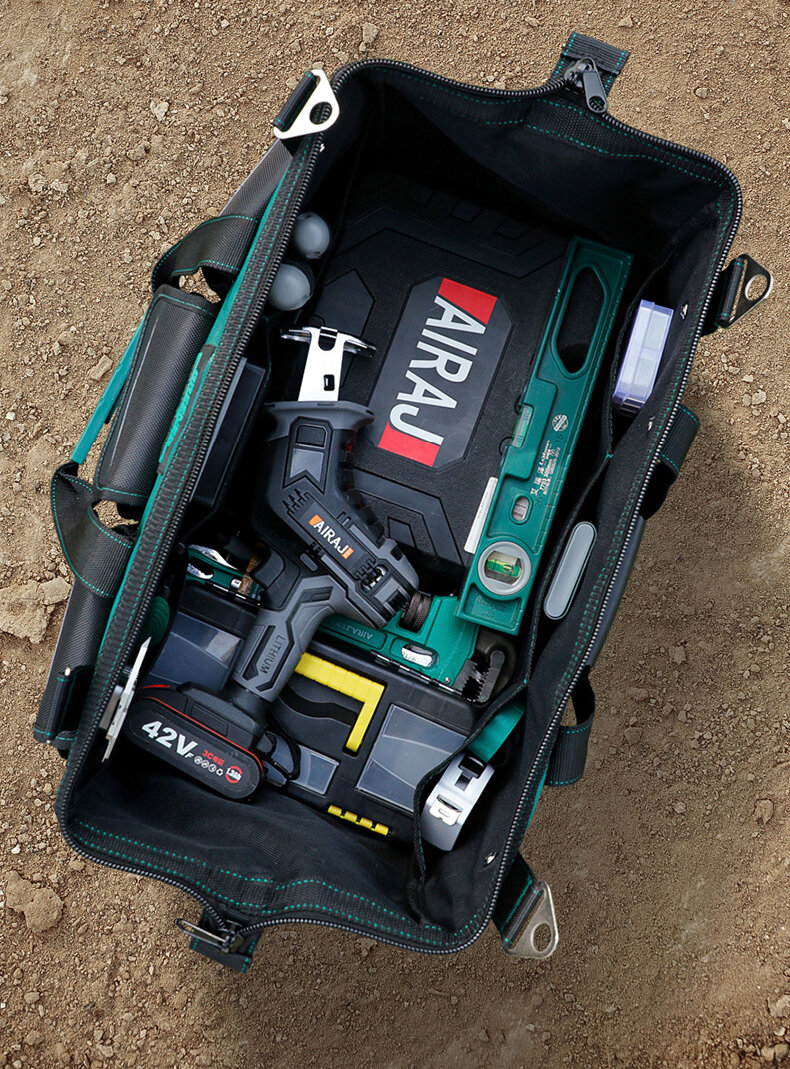 Утолщенная сумка для инструментов, плечевой ремень, Оксфорд, 45х23х28 см, бирюзово-черная + органайзер