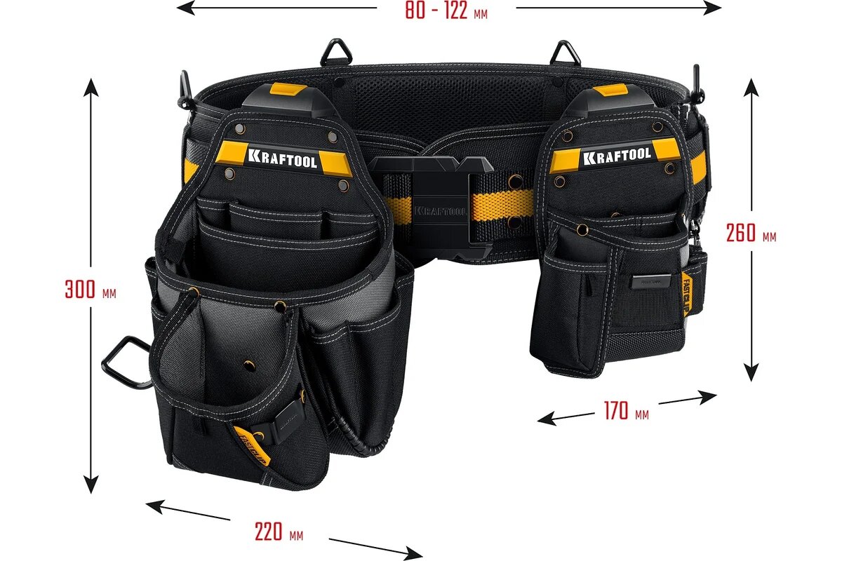 Пояс монтажника KRAFTOOL KBS-3 в комплекте: пояс монтажника, большая сумка, малая сумка KRAFTOOL (38762) интересное: