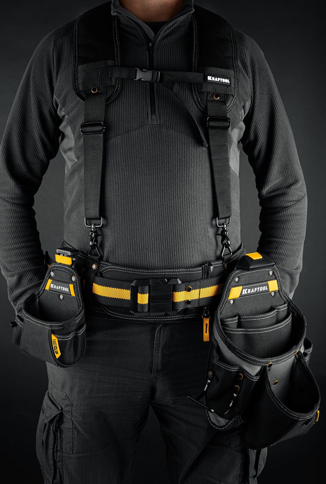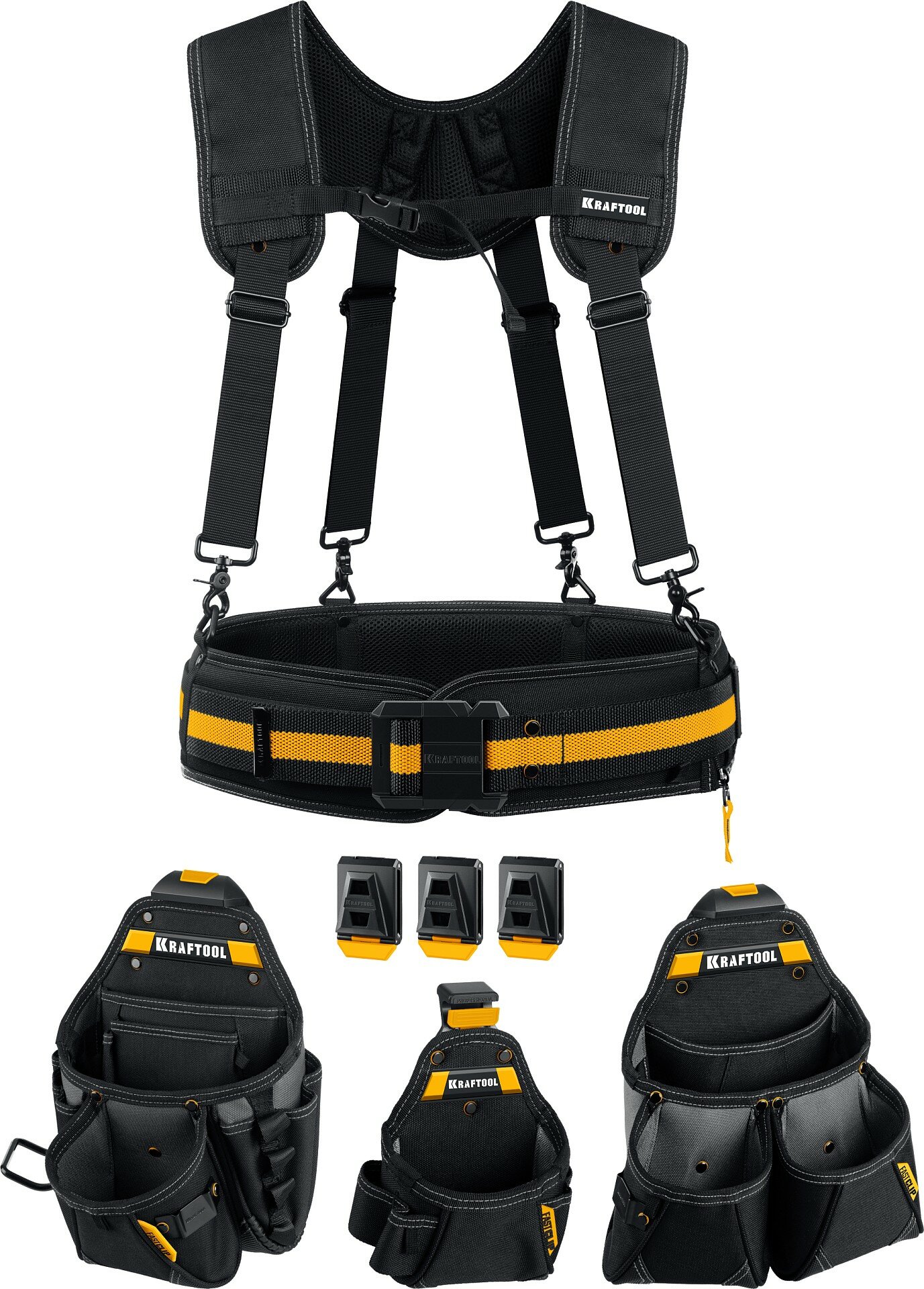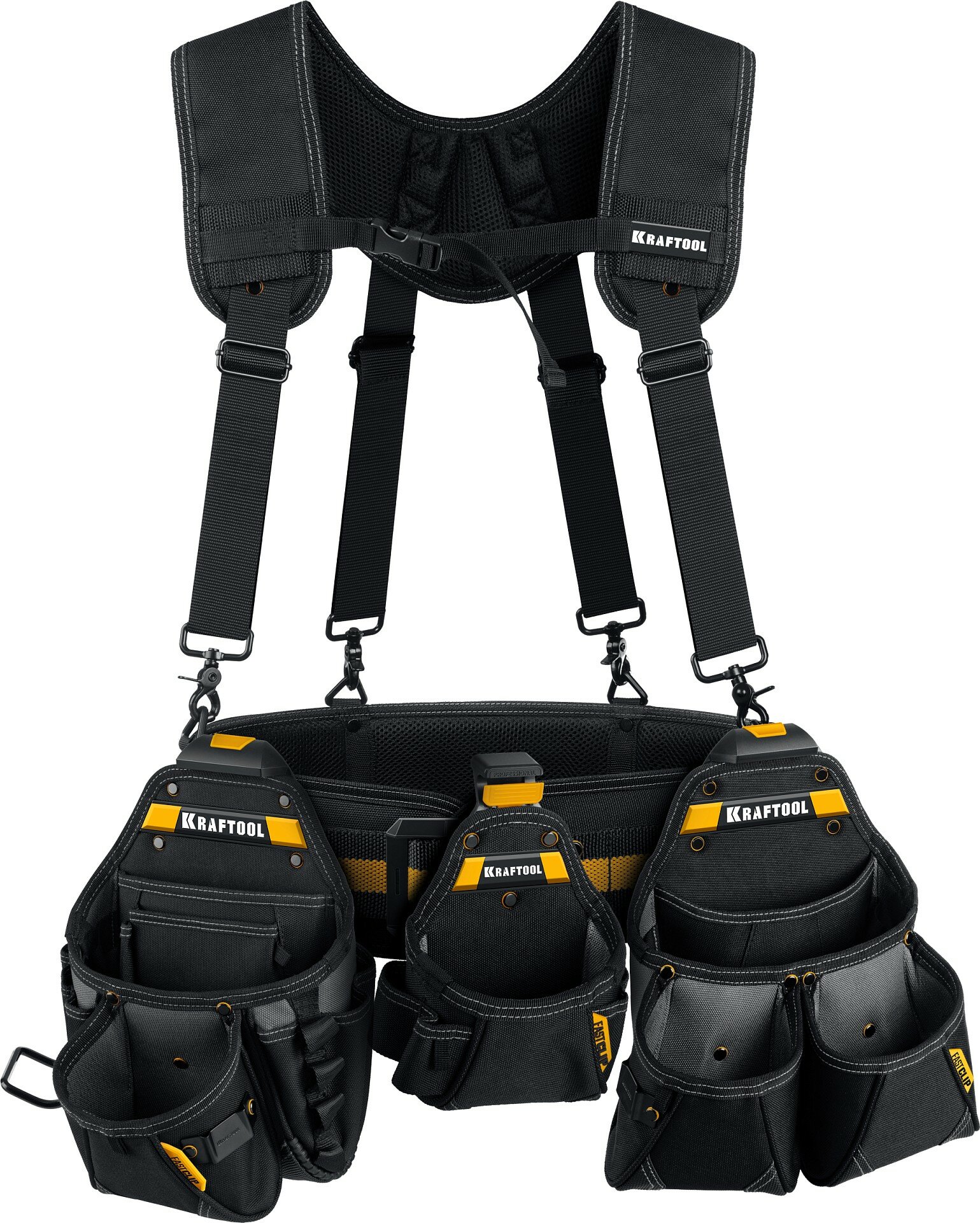 Пояс монтажника с подтяжками и 3 сумками KRAFTOOL KBS-5 38760-5 интересное: