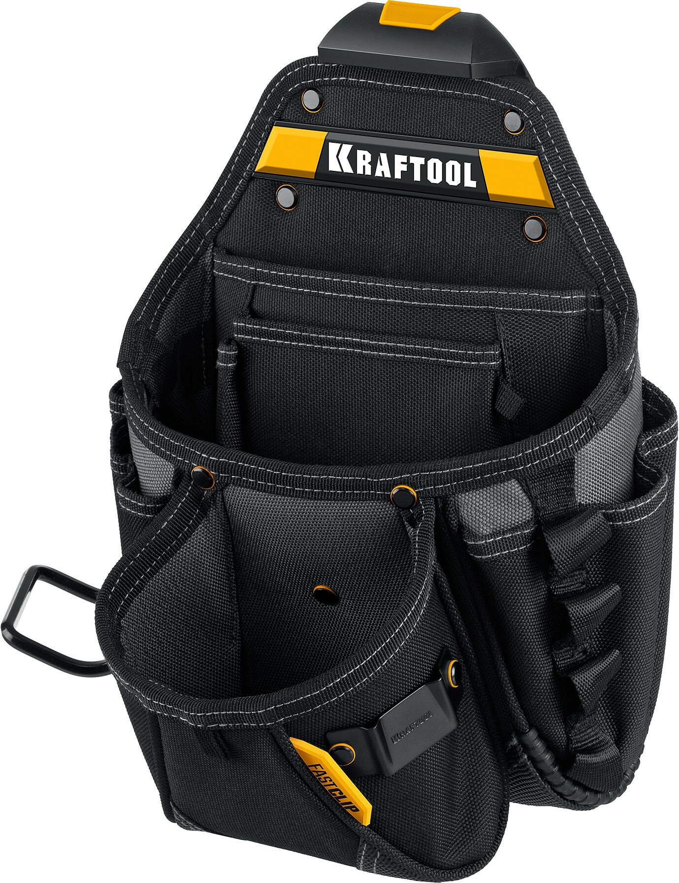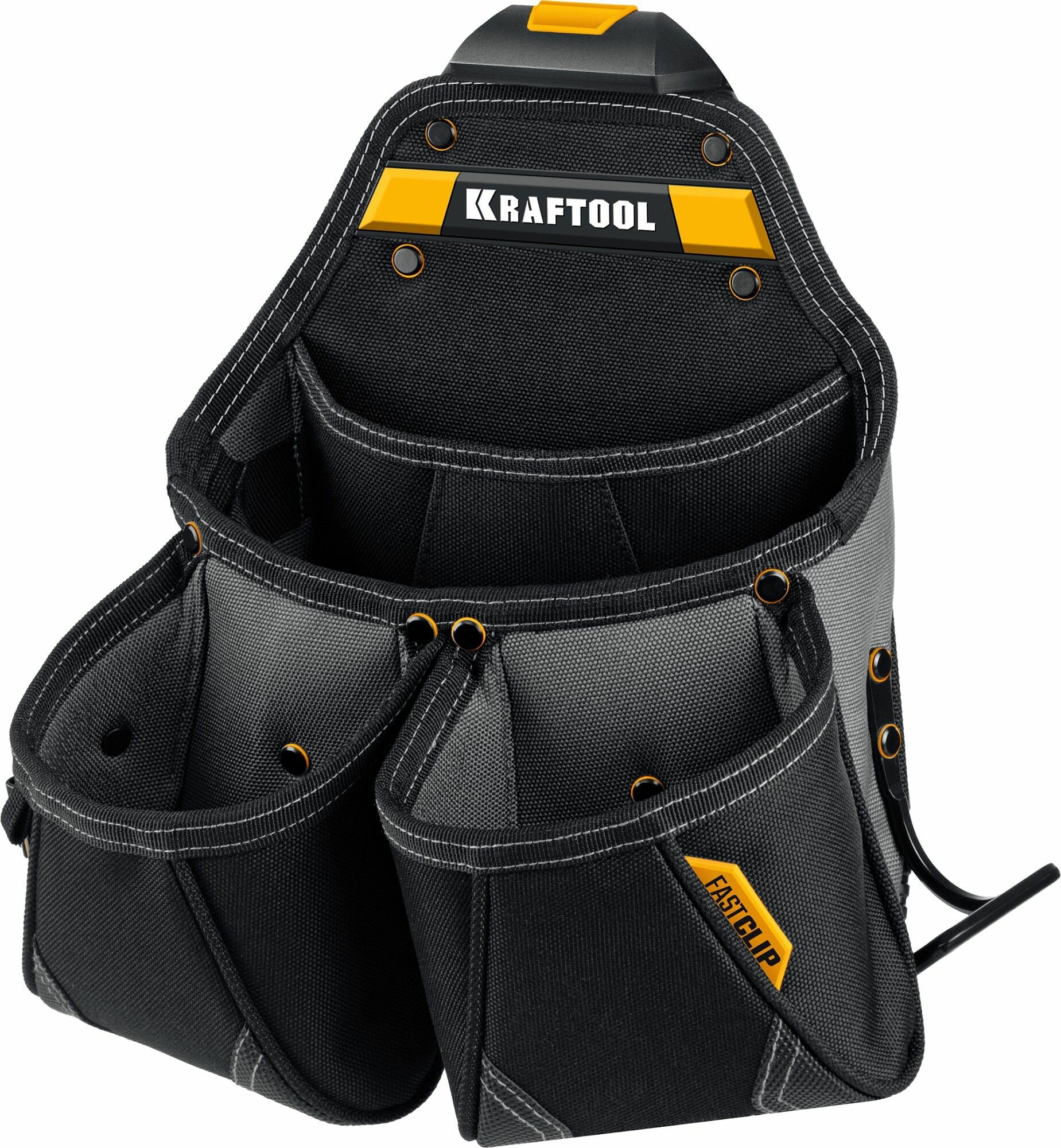 Поясная сумка KRAFTOOL KPB-23 с быстросъёмным креплением FastClip, плечевой ремень, 23 кармана и петли, 290 х 310 мм (38766)