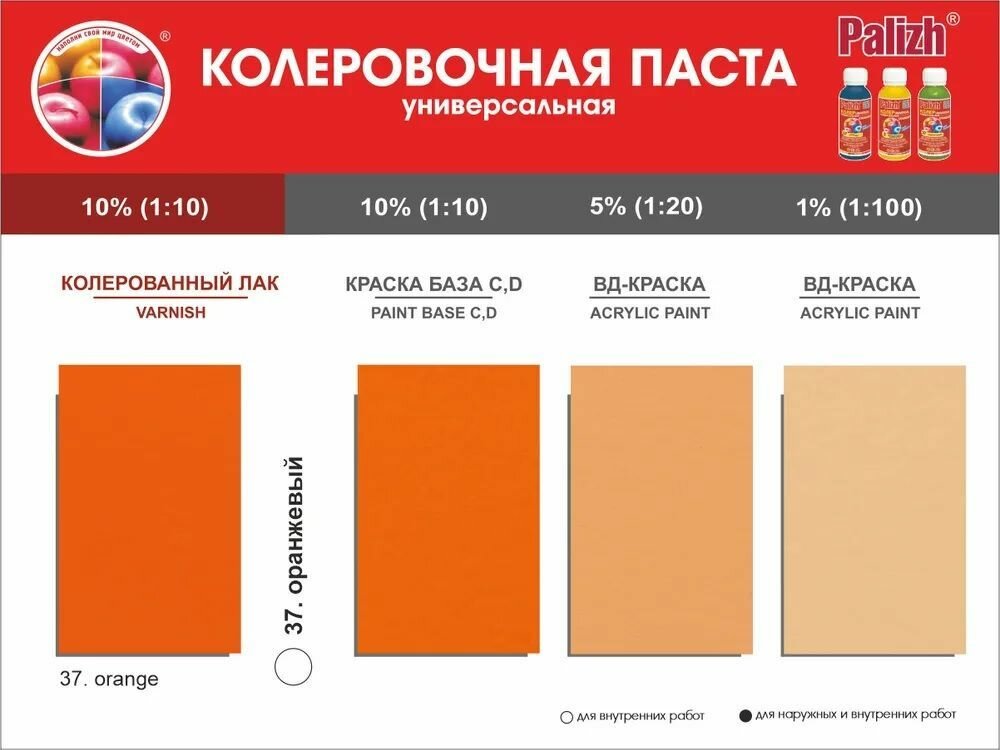 СохранитьКолеровочная паста Palizh Universal Standart ST-37 оранжевый 0.1 л интересное: