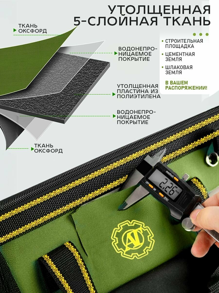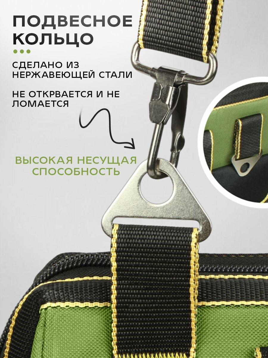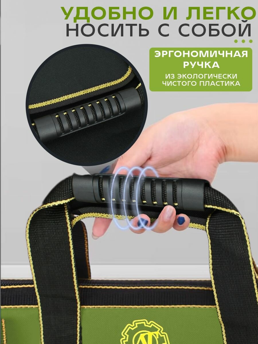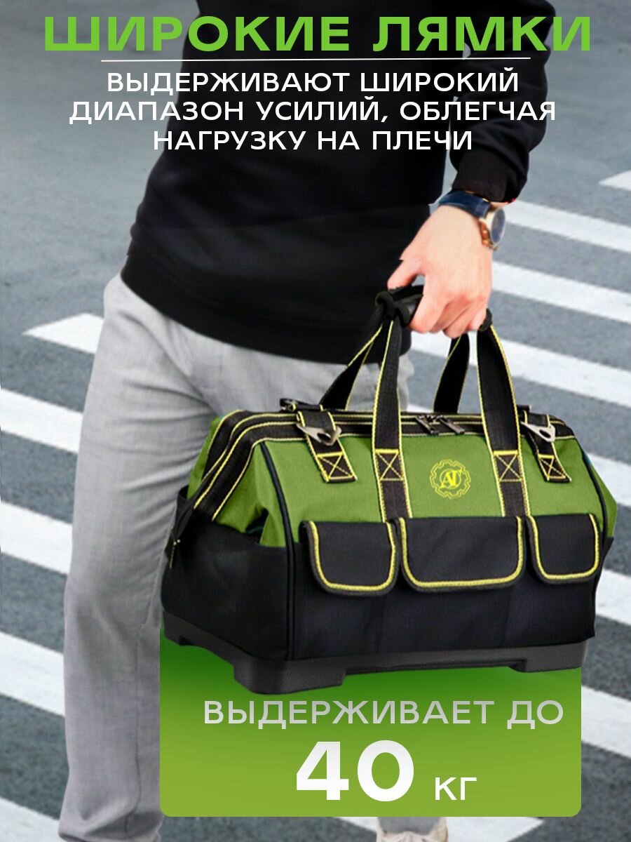 Сумка для инструмента 410х230х300 мм, строительная сумка 17 отделений, цвет чёрно-зелёный
