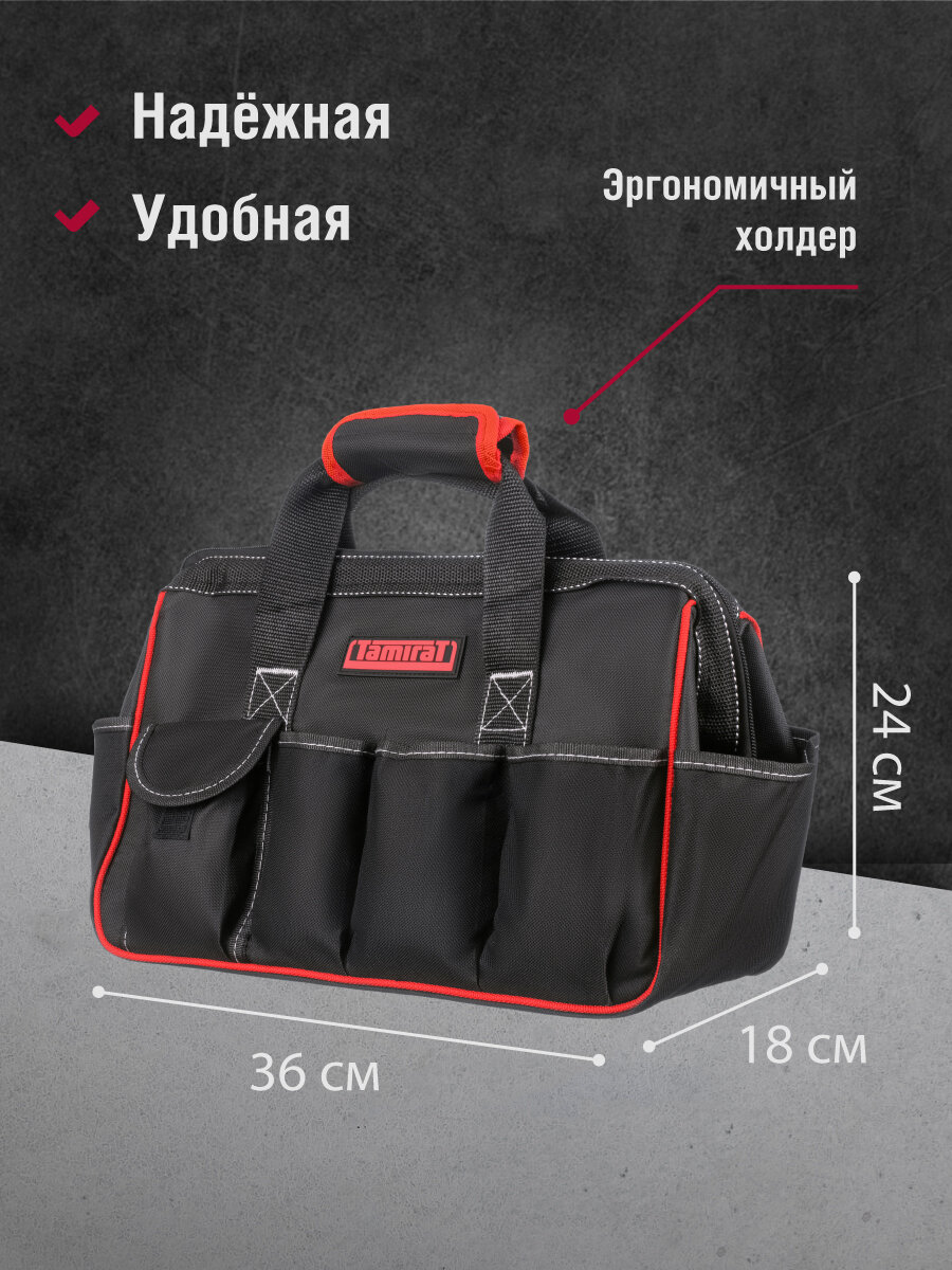СохранитьСумка для инструмента TAMIRAT 91 366 TTTA-Bag19 (с ножками 360*180*240 мм) интересное: