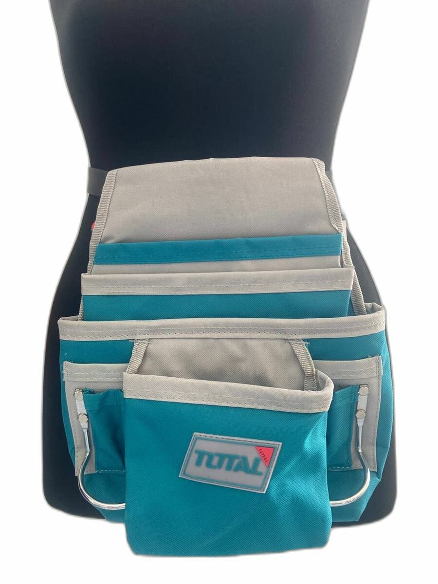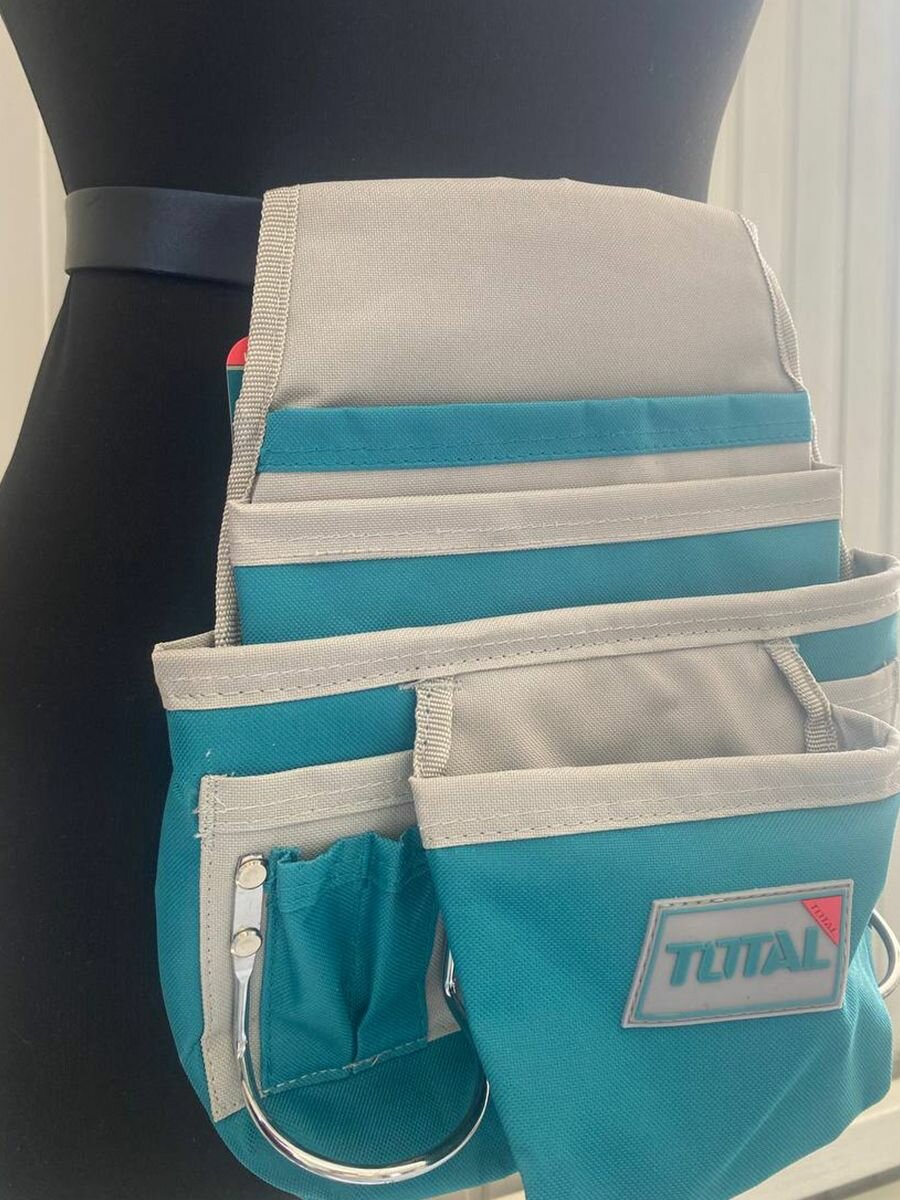 Монтажная сумка-пояс синяя для инструментов TOTAL, мужская. Строительный органайзер. Держатель молотка, ключей и инструментов. интересное: