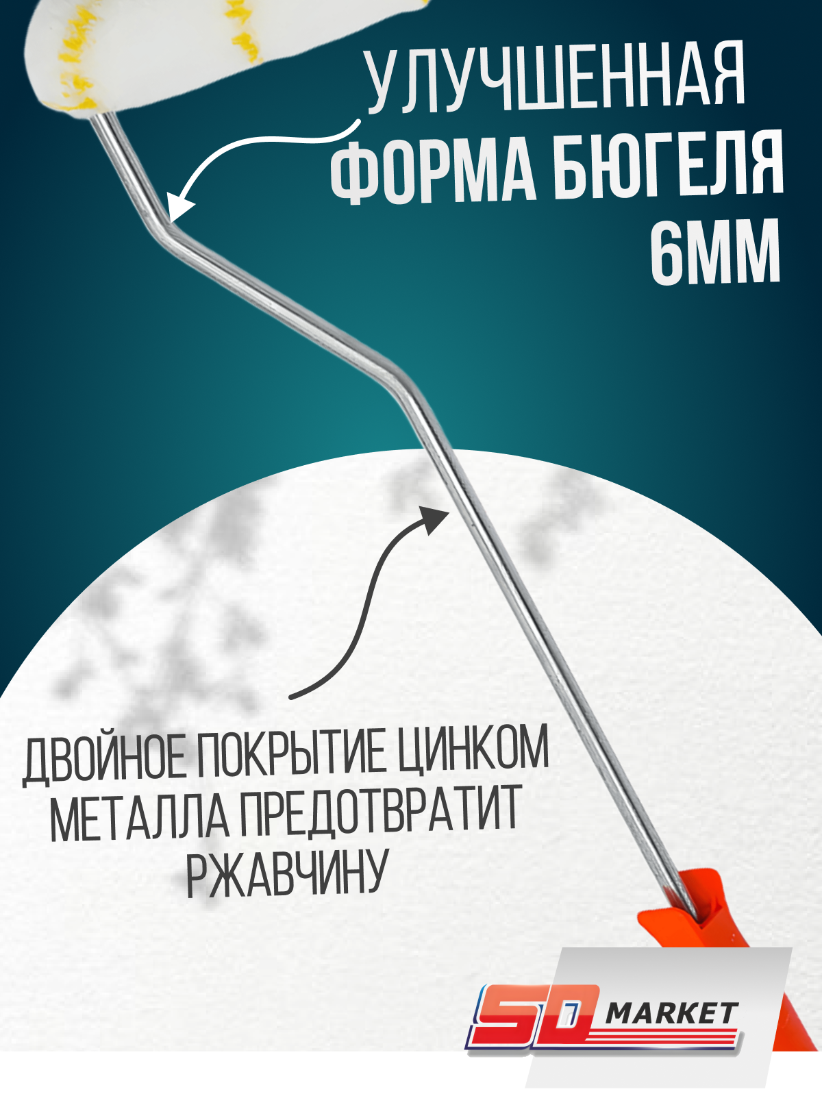 Валик малярный для стен и мебели 10 см , с удлиненной ручкой