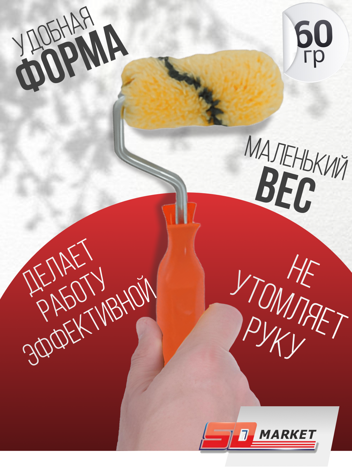 Валик малярный мини 10 см для краски с удлиненной ручкой