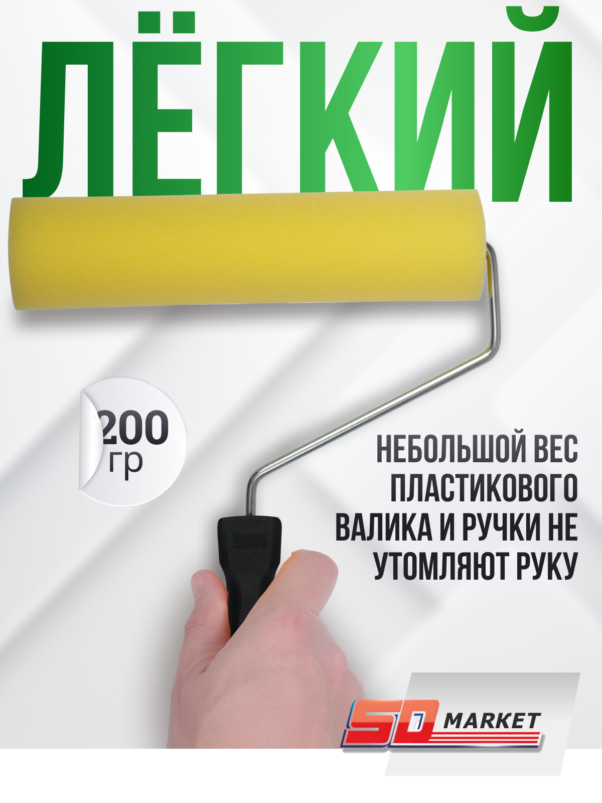 Малярный мини валик с эргономичной пластиковой удлиненной ручкой из поролона для красок на водной основе, ровная поверхность, диаметр 35 мм, размер 150 мм